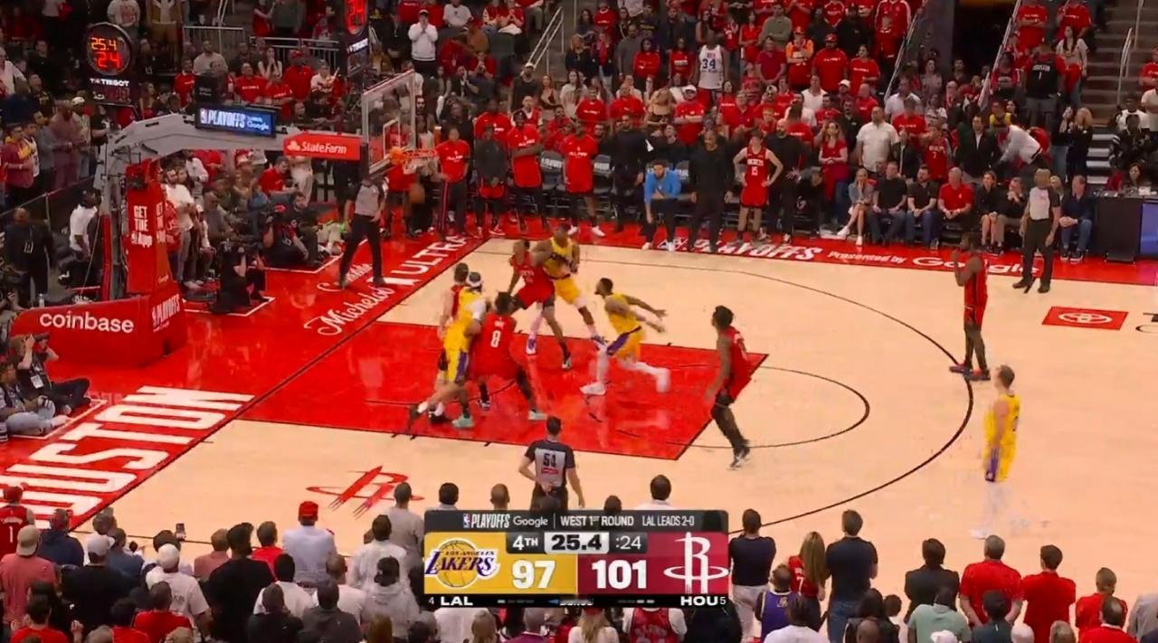 湖人火箭G3裁判报告:詹姆斯踩线出界漏吹 斯玛特3罚提前进线违例