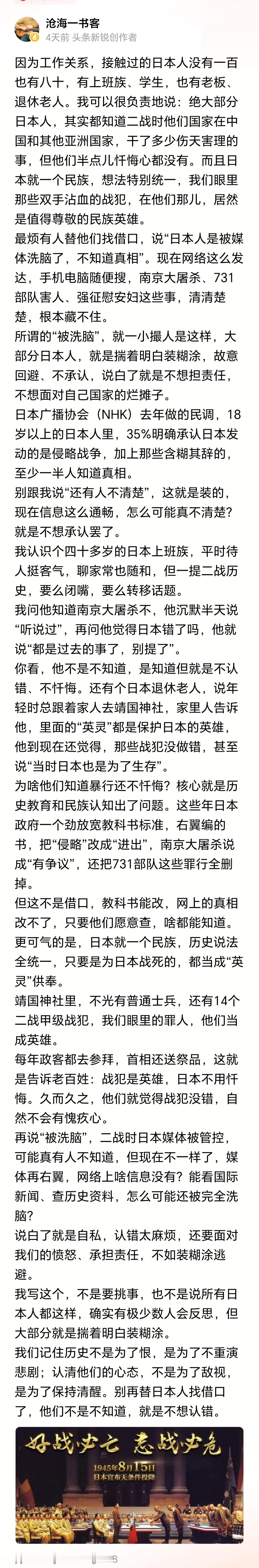 日本不可怕,可怕的是处处维护日本利益的中国人!