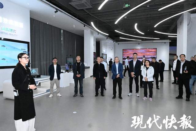 4月25日下午,由盐城市委宣传部、现代快报社共同组织的“向海图强、向绿而兴、向新转型”2026年全国重点媒体盐城行活动来到盐南高新区,走进这座“数字造梦工厂”,在数字视听和AI体验空间里,亲身感受数字科技带来的沉浸式震撼。