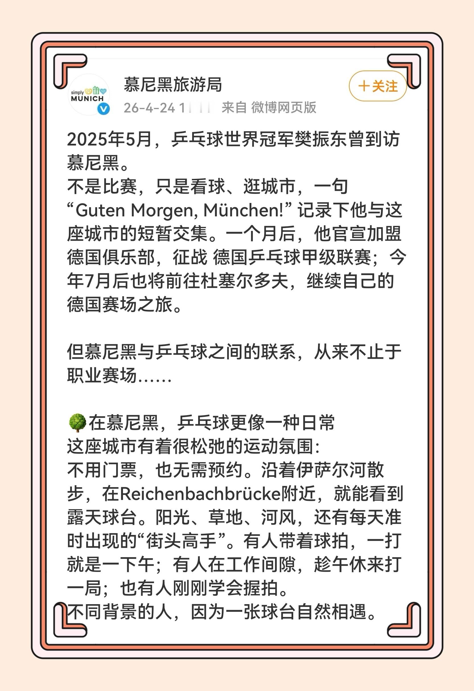 世界的意义在世界之外,而世界之外的目光却早已将他视若珍宝。所以慕尼黑旅游局会隔着一整年说思念——只因他曾去过、看过那一晚的欧冠足球决赛。德媒盛赞樊振东深不可测樊振东说仍在路上樊振东冠军目光永远聚焦顶级较量外交部欧洲司宣传樊振东