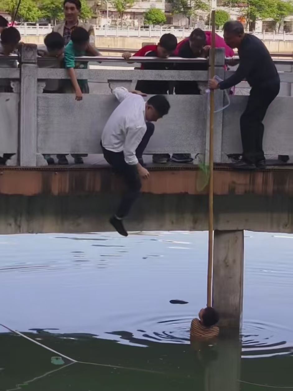 4月25日下午4时30分许,湖南省耒阳市金杯塘边发生惊险一幕:一名十岁左右的男孩在塘边玩耍时不慎落水,水深达三四米,情况危急。家住附近的耒阳市中医医院党委委员、副院长资小明路过现场,毫不犹豫跳入水中,与岸边热心市民合力将孩子救起。