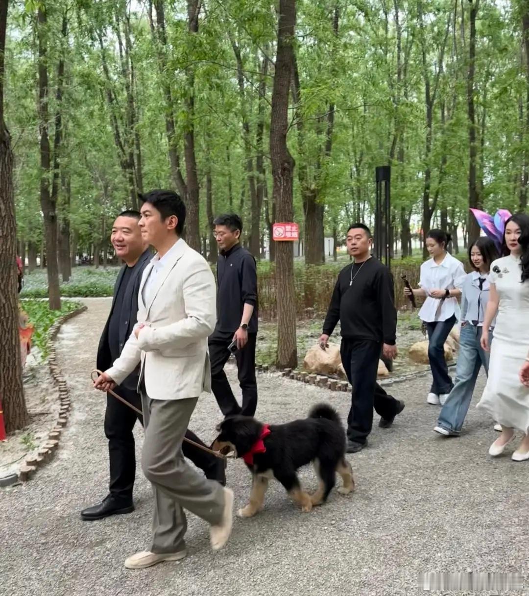 4月25日,霍思燕与杜江现身北京平谷桃园里的欢乐田园,两位拉着救助的狗狗,霍思燕