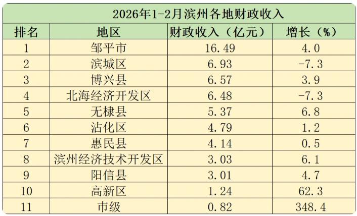 2026年1-2月滨州地方财政收入为58.88亿元,同比增长2.9%。滨州前两个月的财政接近了60亿。