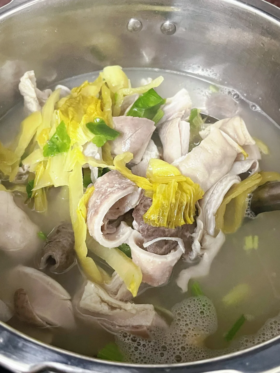 猪肚焯水后别煮太久,不然会老;酸菜提前洗去多余盐分,味道更柔和;胡椒粒压碎更出味哦~