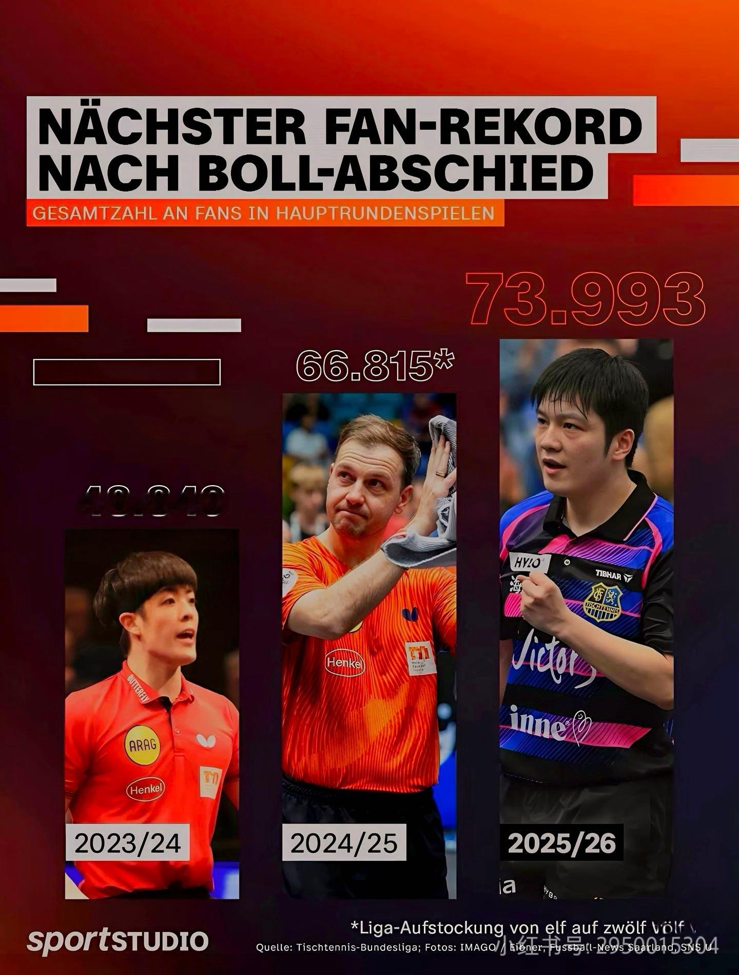🇩🇪电视台数据显示,樊振东登陆德甲产生巨大“吸粉”效应:萨尔布吕肯主场核心轮次观众同比暴涨298%,更在波尔退役的背景下将赛季总观众强势冲至73993人,一举改写TTBL历史最高上座纪录。樊振东冠军目光永远聚焦顶级较量德媒盛赞樊振东深不可测legend樊振东 ©️铭利