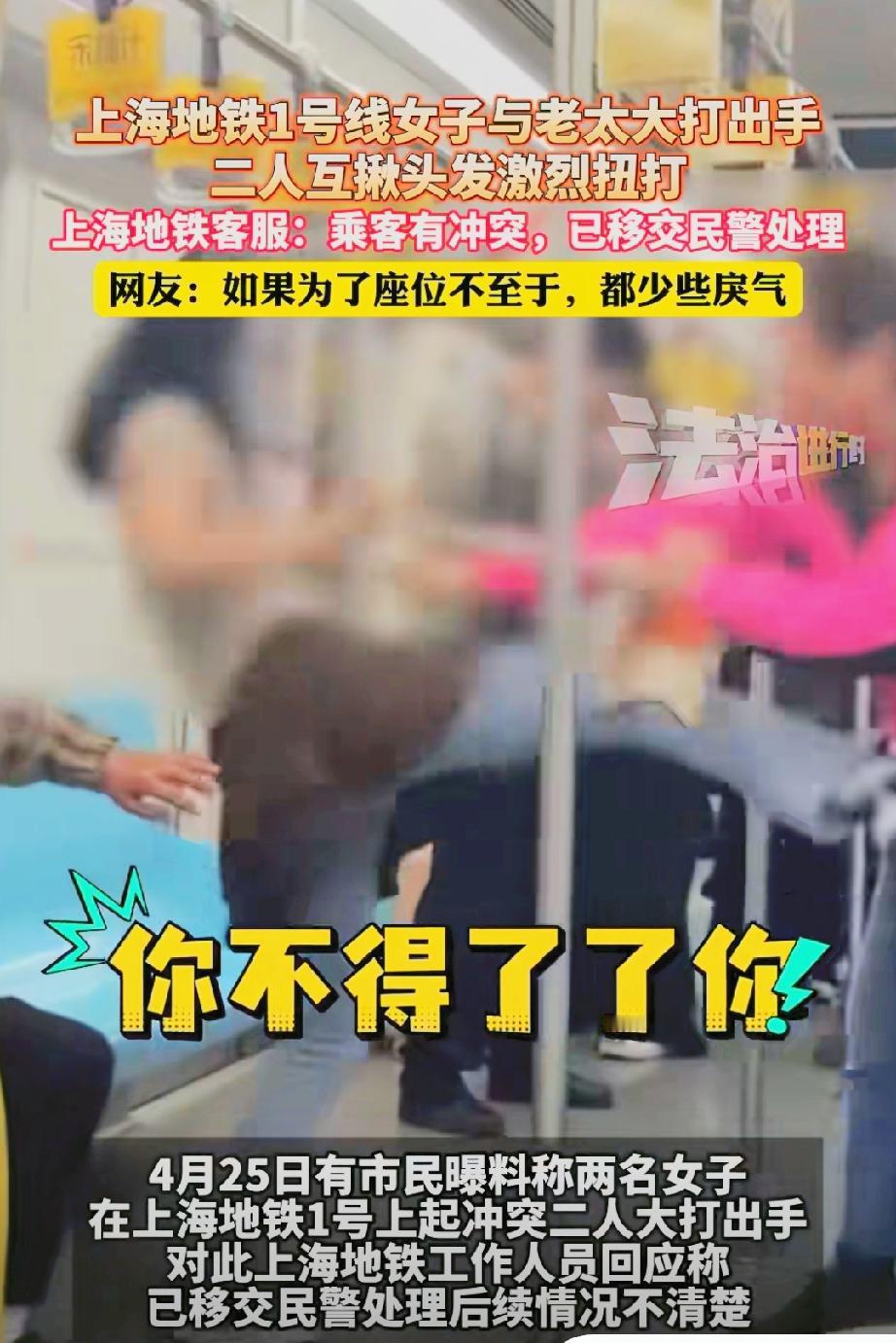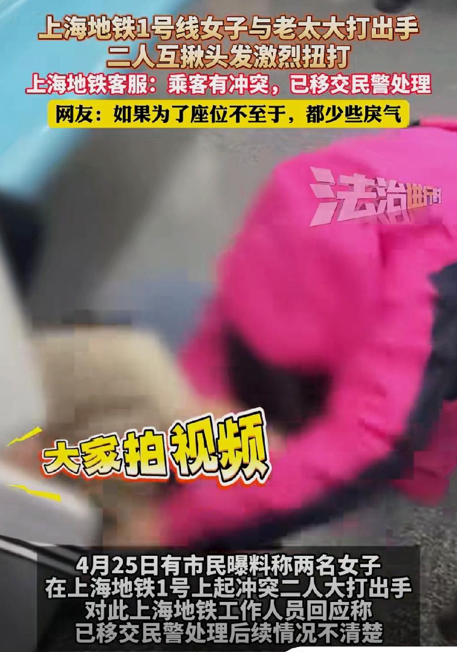 上海地铁1号线,一名女子和老太太大打出手,双方发生了激烈的肢体冲突,车厢内有人指责这一行为,也有乘客瞎起哄,还有乘客置若罔闻,仿佛没有发生一样,像极了鲁迅笔下的那个社会。