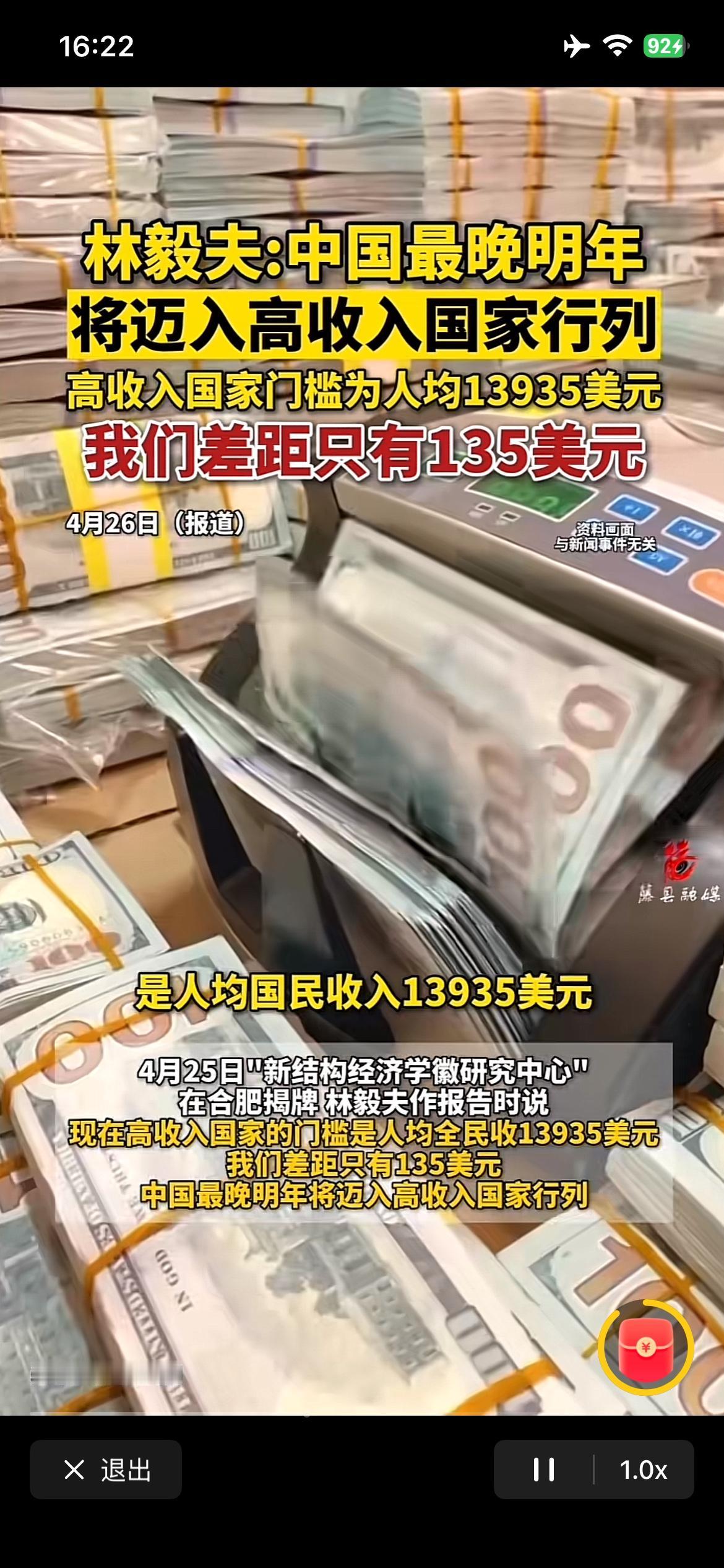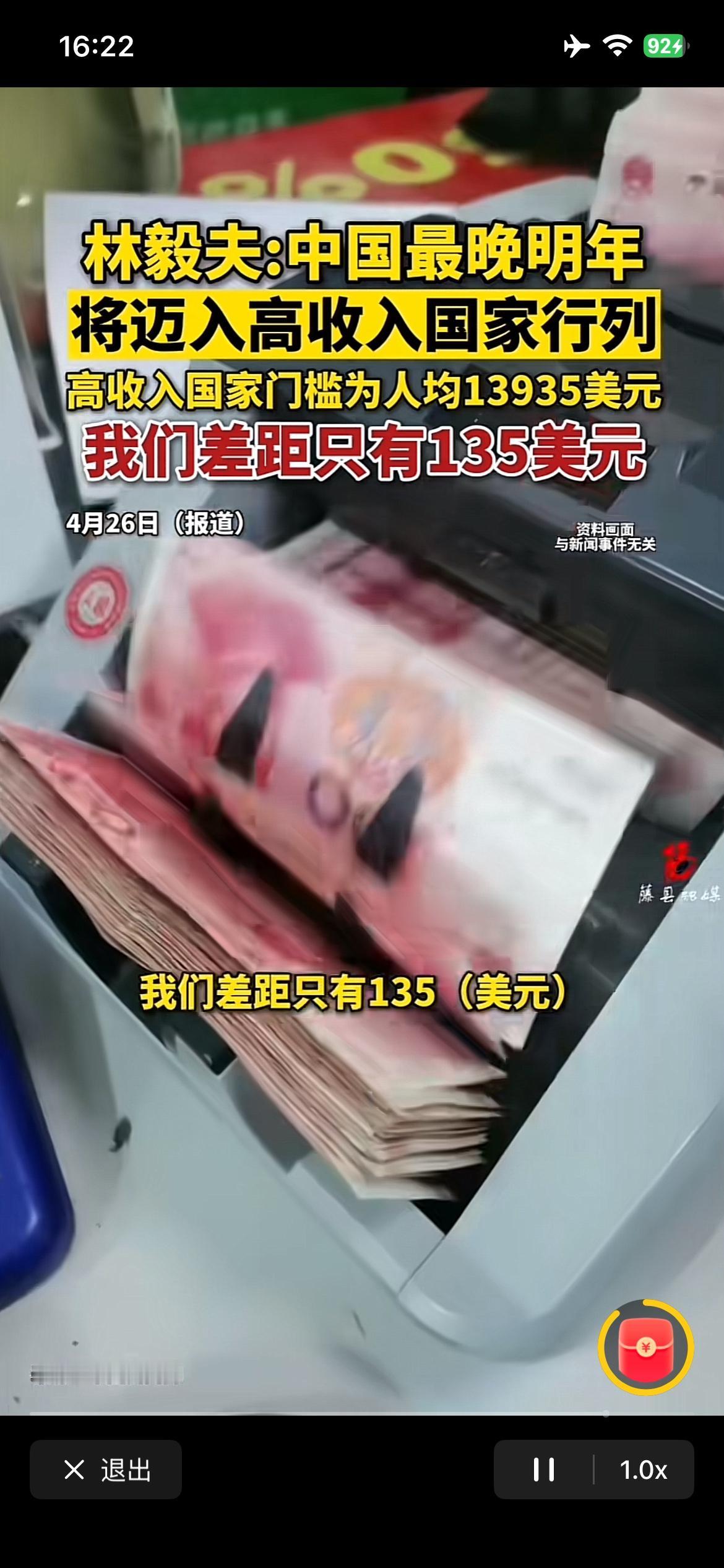 林毅夫表示,我国距离高收入国家13935刀的门槛,仅差135刀,言下之意是我们即将进入新的发展阶段。