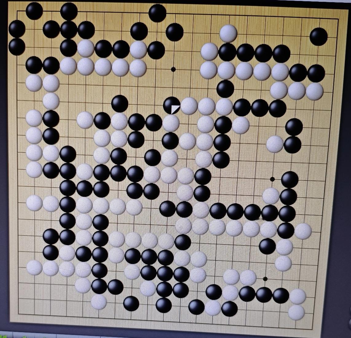 行至173手,王星昊下出问题手,绝艺老师一再强调要在右边夹击那颗白子,可是王星昊没有下出一选:而就在大家为王星昊而惋惜之时,杨楷文的应对也是出现了问题,这样胜率左右摇摆不定,还是王星昊没有抓住机会,现在杨楷文领先3.5目,杨楷文占到了便宜现在王星昊实在是不在状态,现在已经191手,杨楷文领先10目多,好了就到这里吧,王星昊不行了。