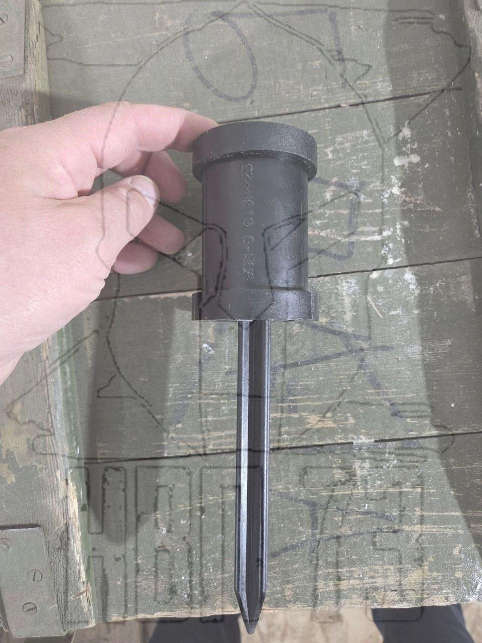 俄罗斯新型反步兵地雷被命名为“UPM-O”。它采用注塑成型的塑料外壳,内部堆叠着锯齿状钢环——旨在形成多个冲击点——并装填75克TNT炸药。该装置配有一根塑料桩,需先将其打入地下。然后安装地雷本体和带有机械雷管(MD-5M 或 MD-2)的 MUV 系列绊线引信。UPM-O 的设计源自苏联早期的 POMZ-2 型桩式破片地雷。POMZ-2 型桩式地雷是世界上仿制最多的设计之一。