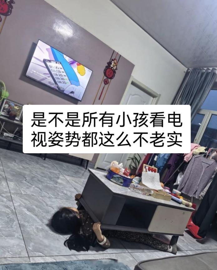 小朋友看电视的奇葩姿势 人类幼崽的看剧姿势,主打一个全身不老实。每一个姿势都是我