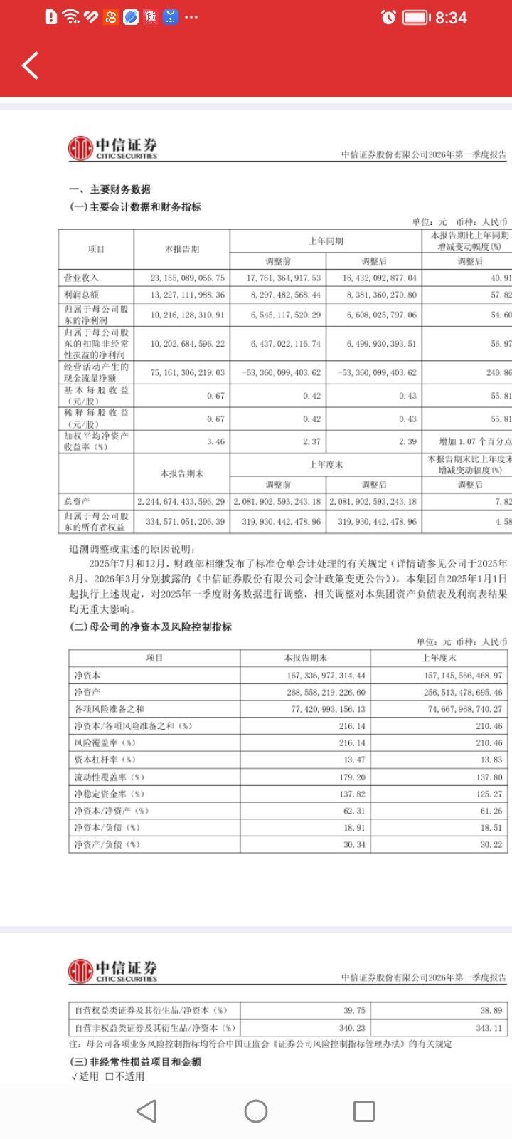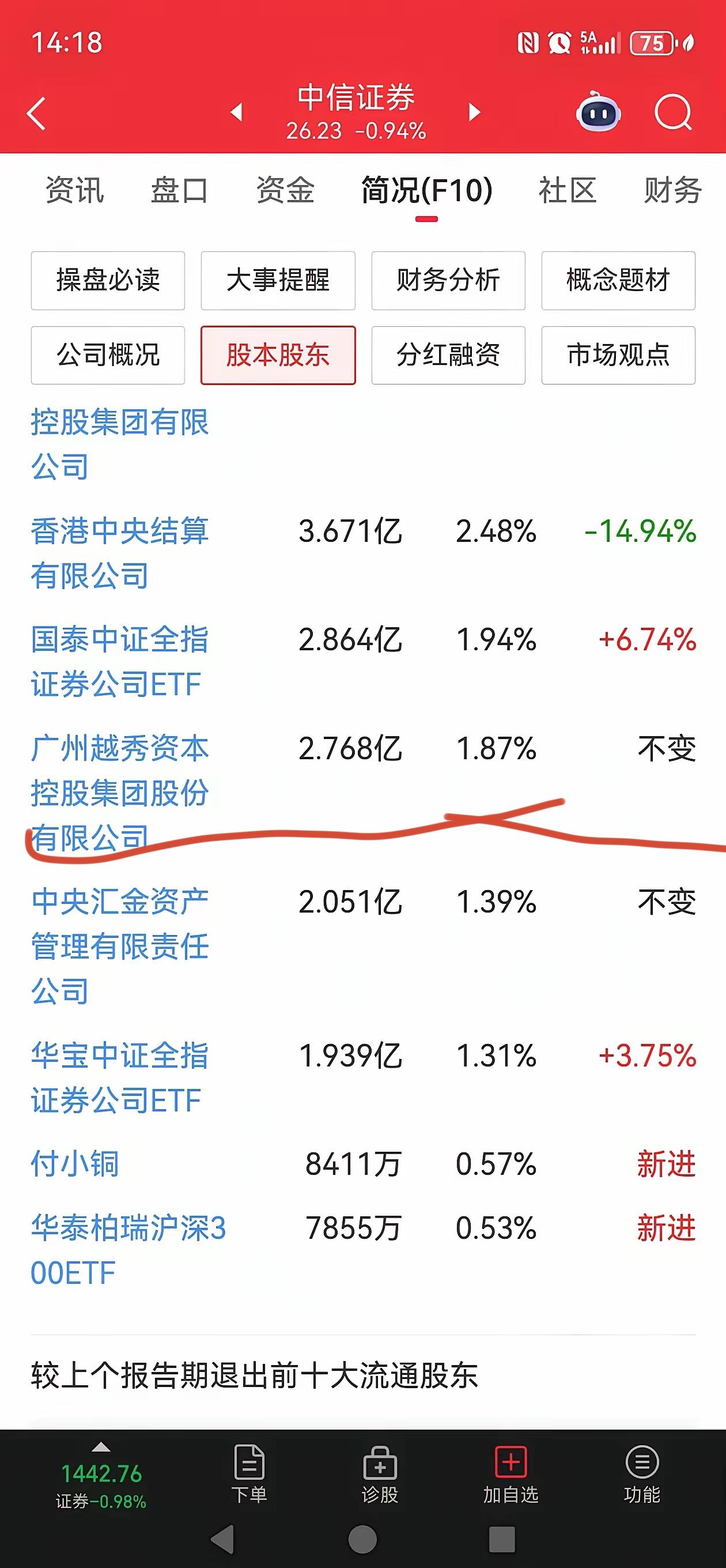 上周末披露的中信证券2026年一季报业绩出现炸裂式增长。但就是股东持股情况关于越
