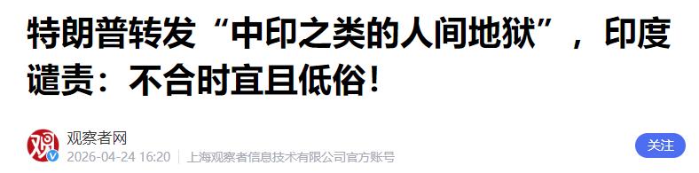 特朗普干了一件特没良心的事。他转发帖子骂中国和印度是“人间地狱”,骂那里的移民是“拿着笔记本电脑的流氓”。