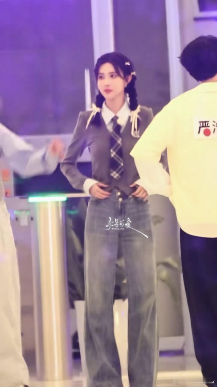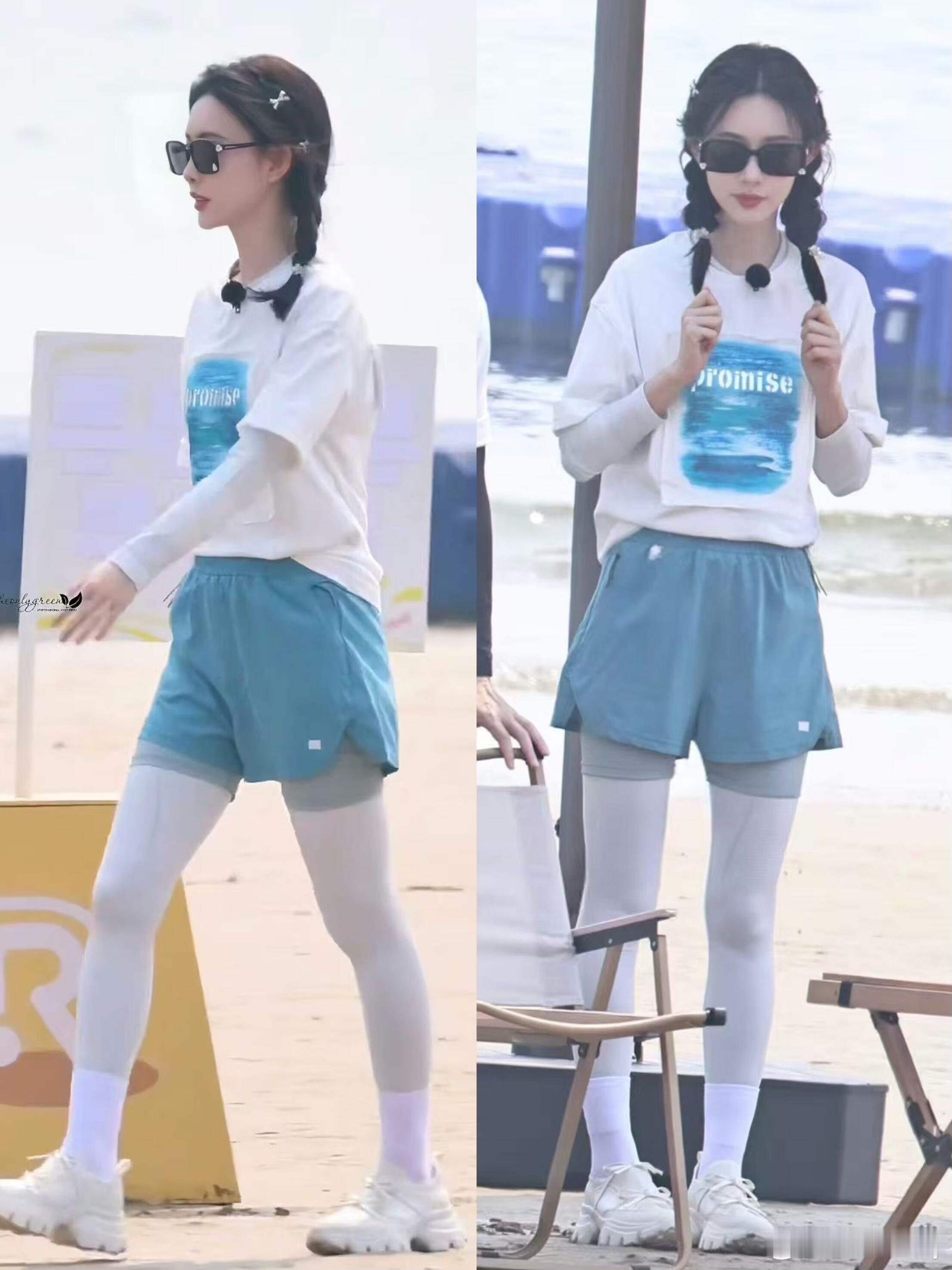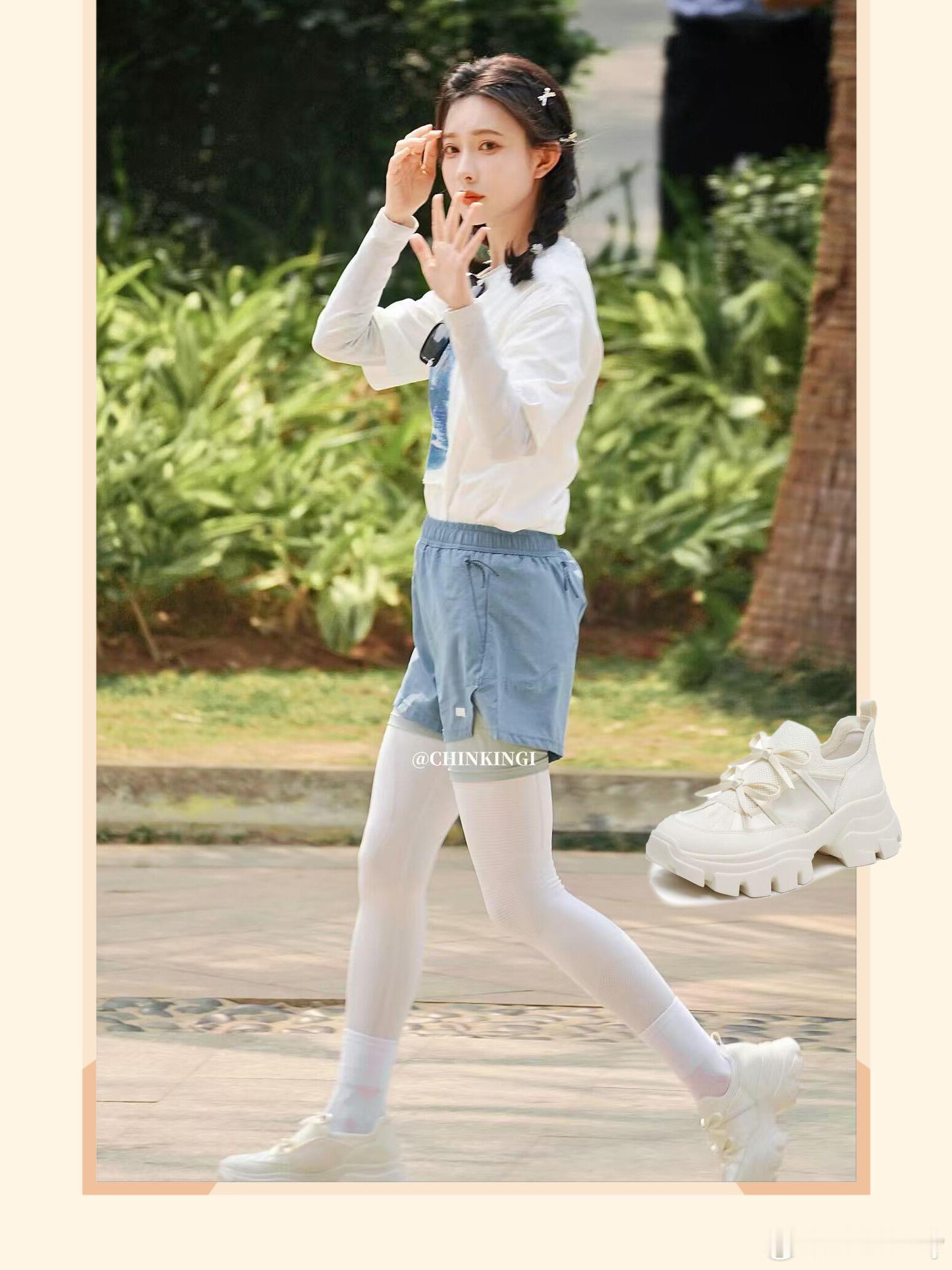美而萌之,孟子义跑男穿搭好明媚啊!孟子义跑男穿搭一套比一套好呀!灰色长袖搭配蓝色
