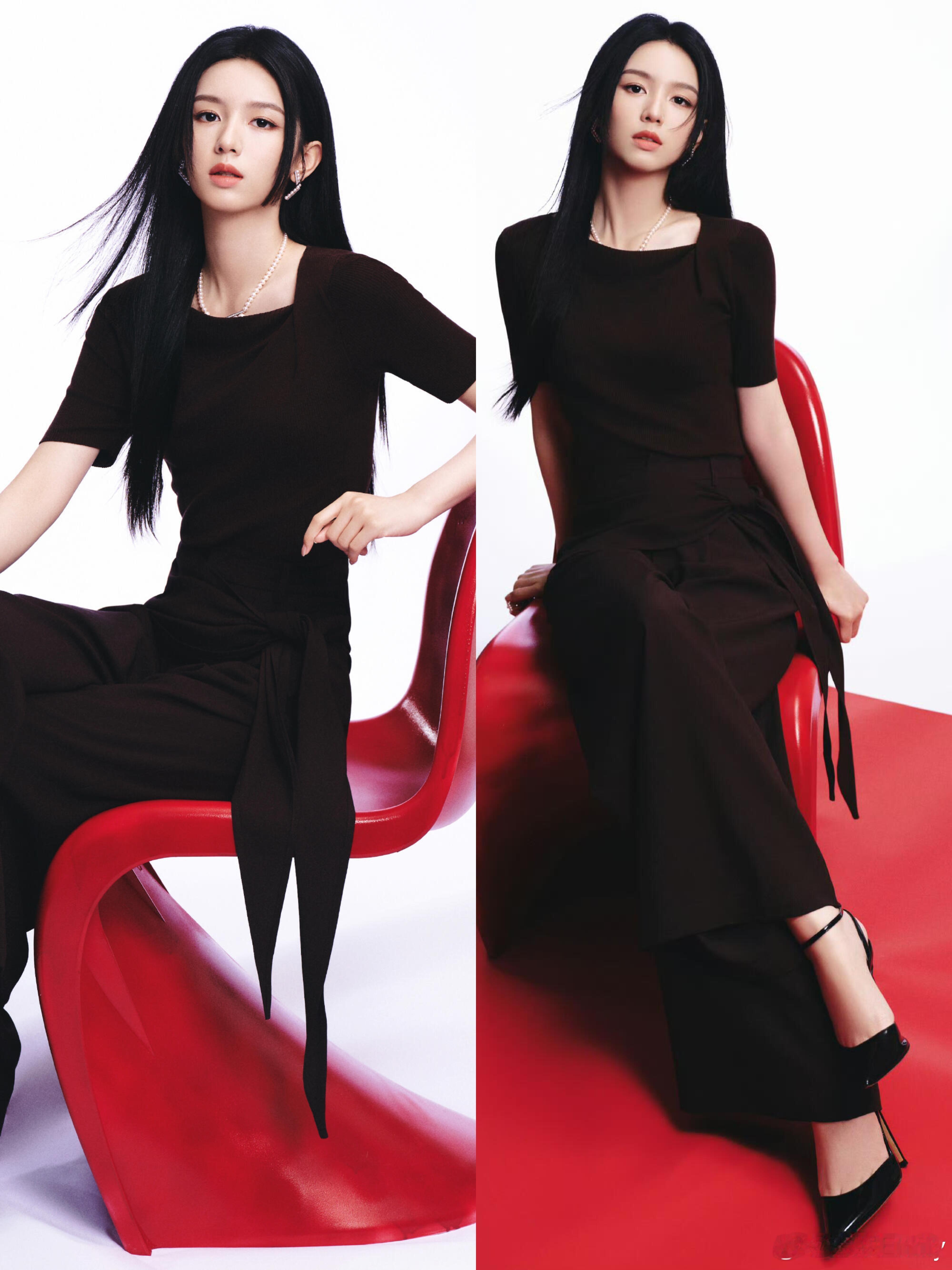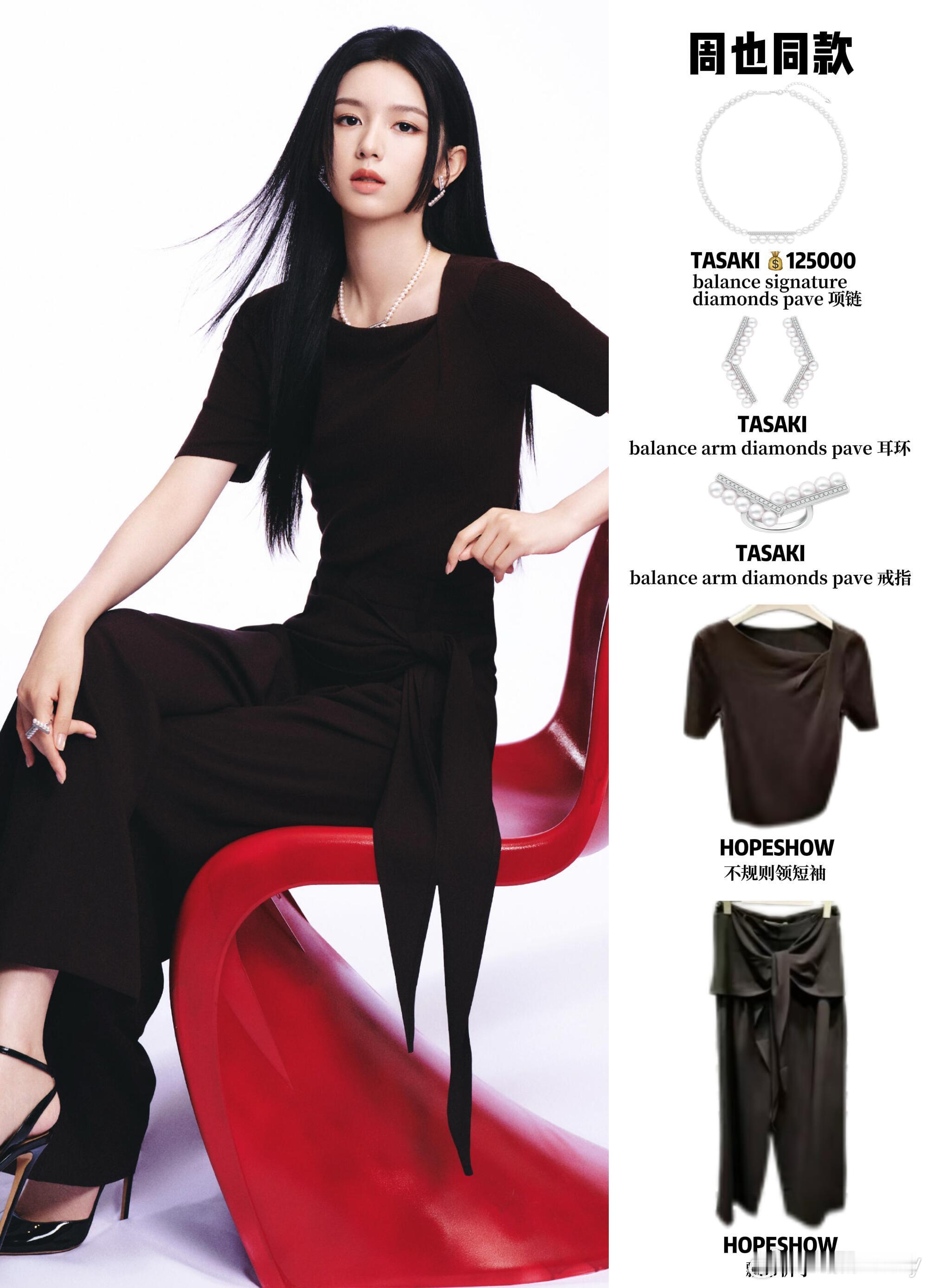 周也线下活动穿搭,美又飒这套look真的又美又杀!不规则斜领小衫+垂感飘带裤,把利落和柔媚平衡得刚刚好,收腰设计超显比例。搭配珍珠首饰提亮,清冷贵气感直接拉满