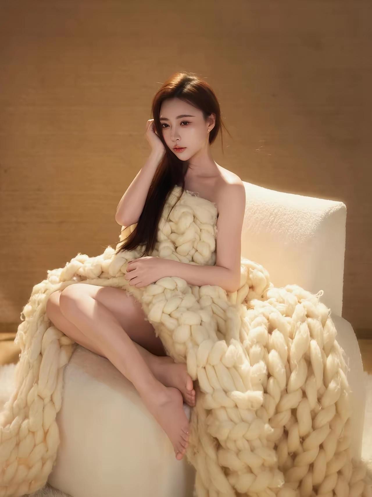 视觉会骗人! 这毛线太粗了,显得这位小女生很娇小, 但看的再仔细一点, 这位小女