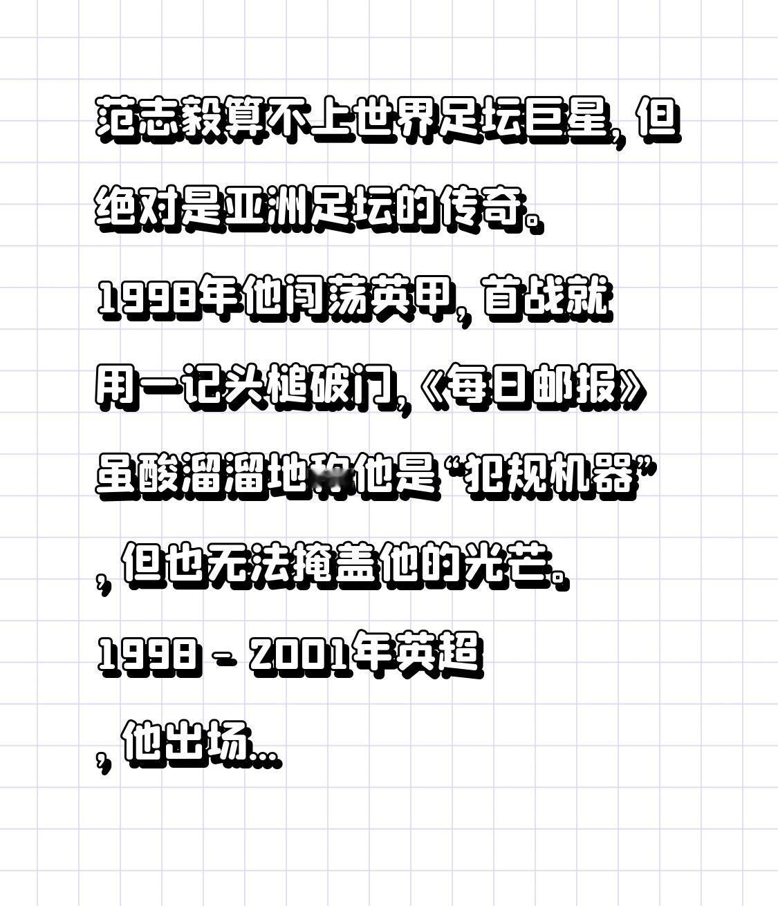 范志毅算不上世界足坛巨星,但绝对是亚洲足坛的传奇。