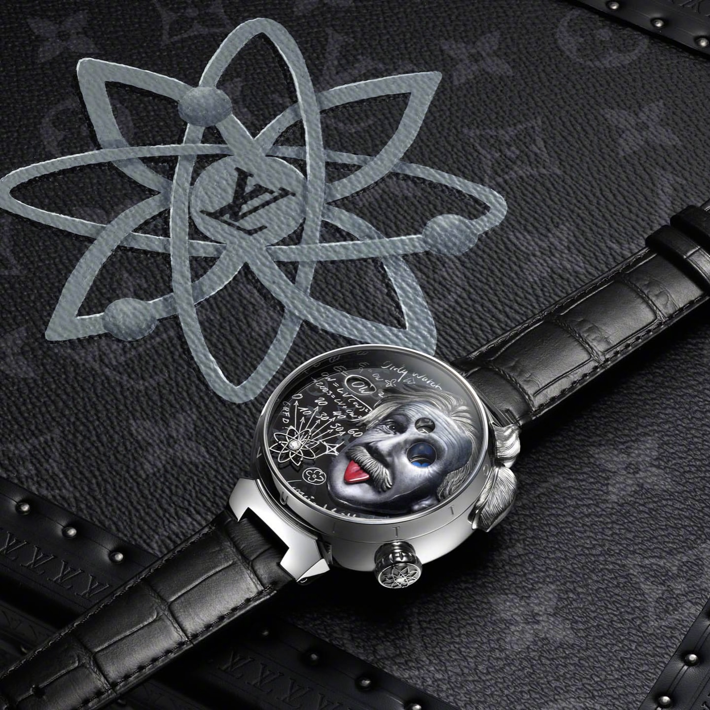 另外,爱因斯坦还会伸出舌头,重现 1951 年那张经典照片的神情;他的左眼还会变换成不同形状,拼组成 Louis Vuitton 标志性的 Monogram 图案。钟表与奇迹2026