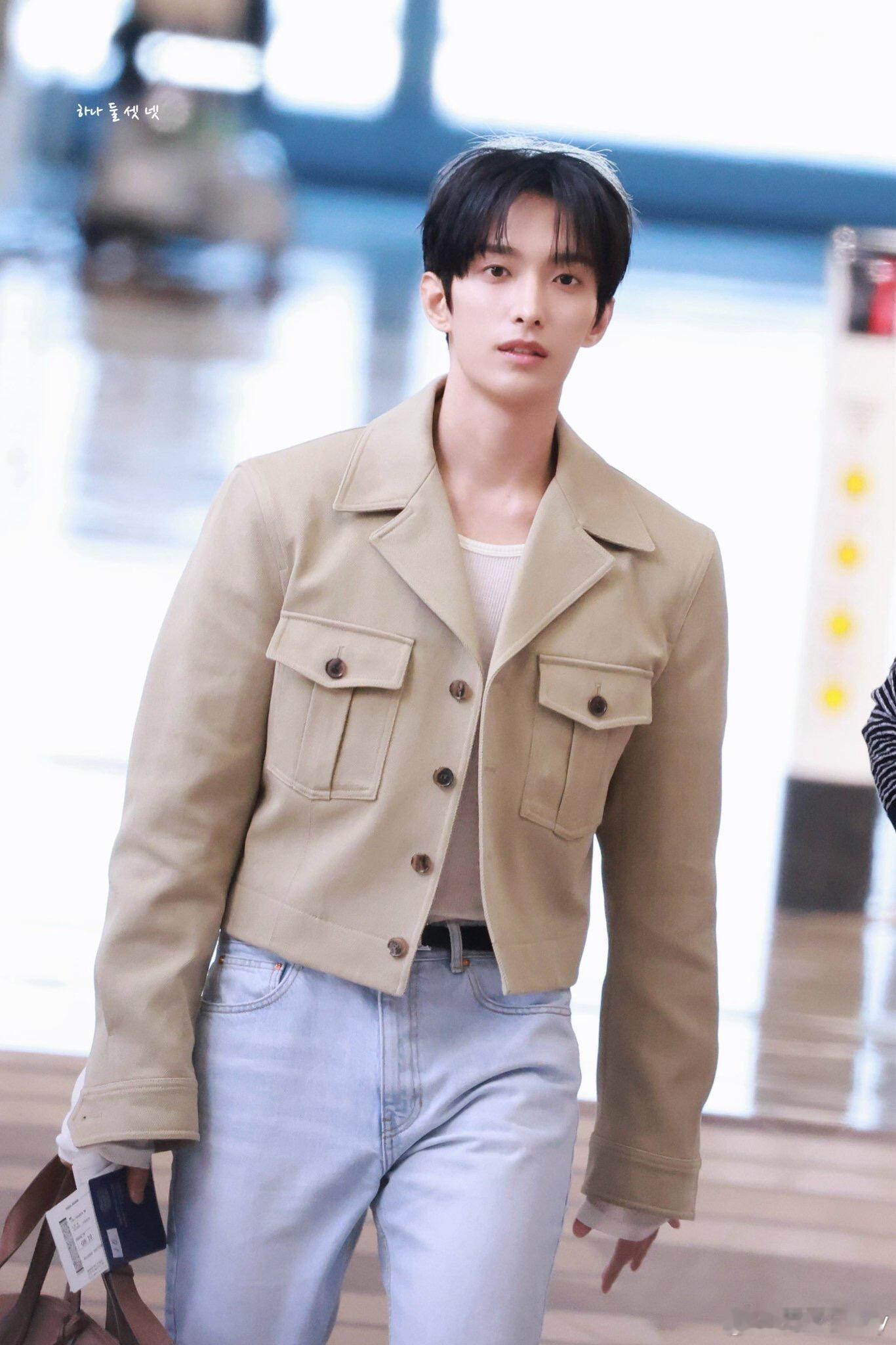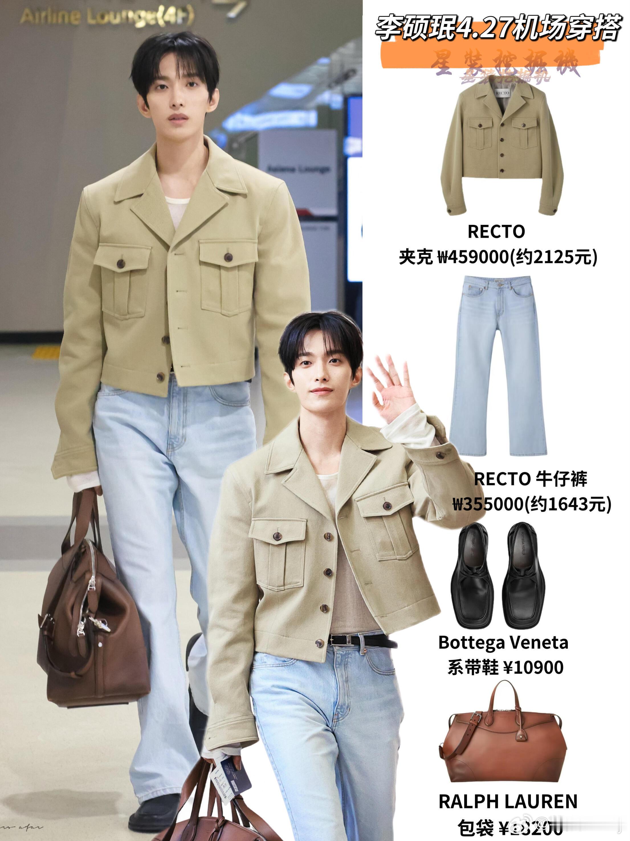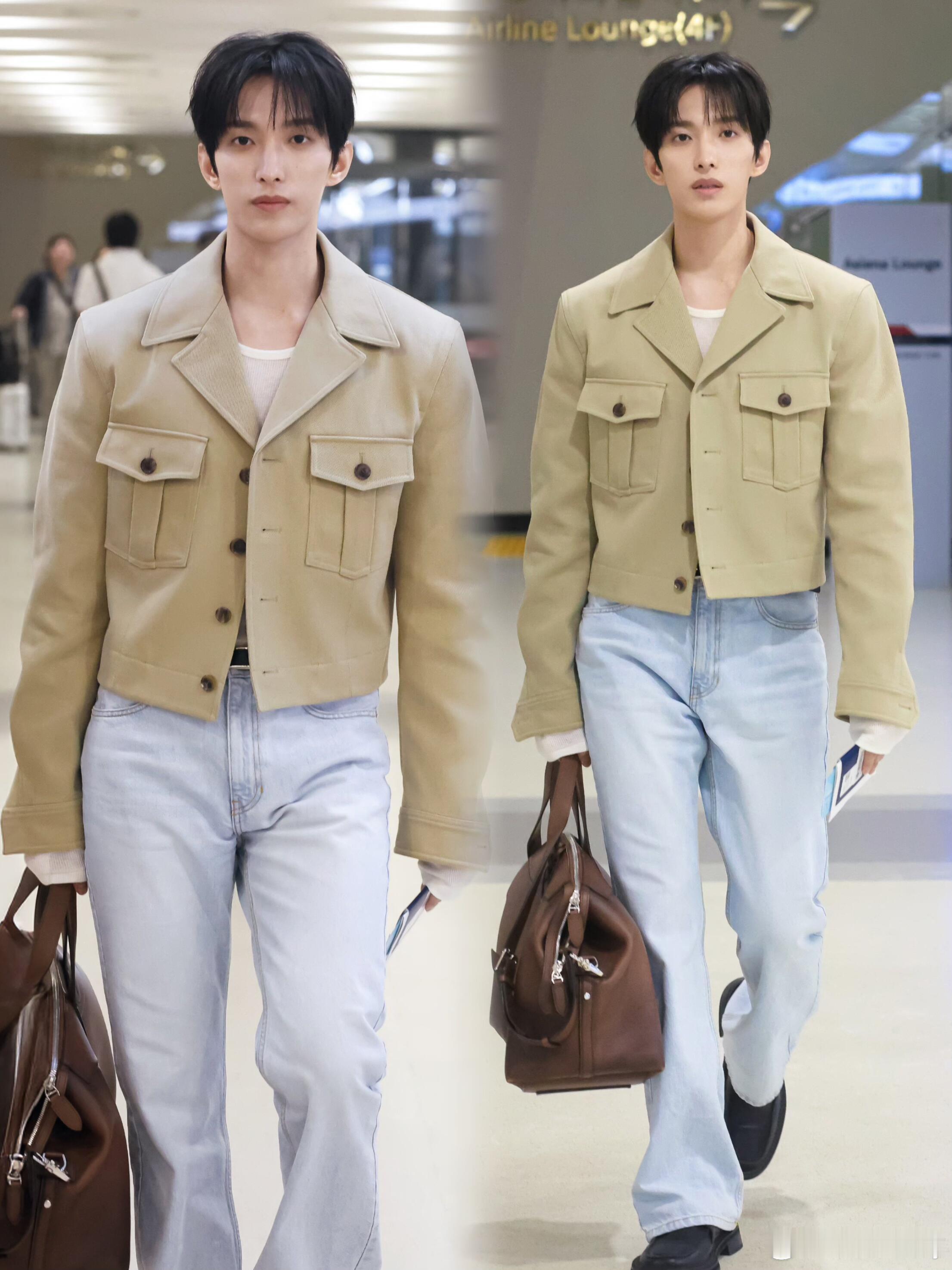 李硕珉4.27✈️|老公感就看我们道兼!DK今日机场穿搭,挺阔的短款夹克内搭白色微透的针织衫,下搭浅蓝色牛仔裤配系带皮鞋,搭配色彩分明显得肩宽腿长,ps:道兼外套也可以不穿的!