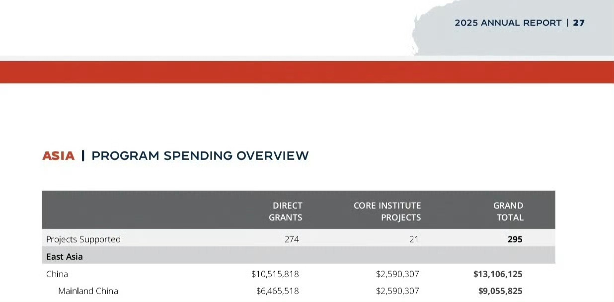 ² 今年的美国NED的年度报告已经公开。现在已经不再写明资助的具体基金会和公司名字,过去写的,所以才知道当年跑出去的人拿了几万美元。现在只写资助的领域,以劳工、人权、环保居多。注意:过去总报告是写资助女权多少万美元的,今年的已经不单独细列了。