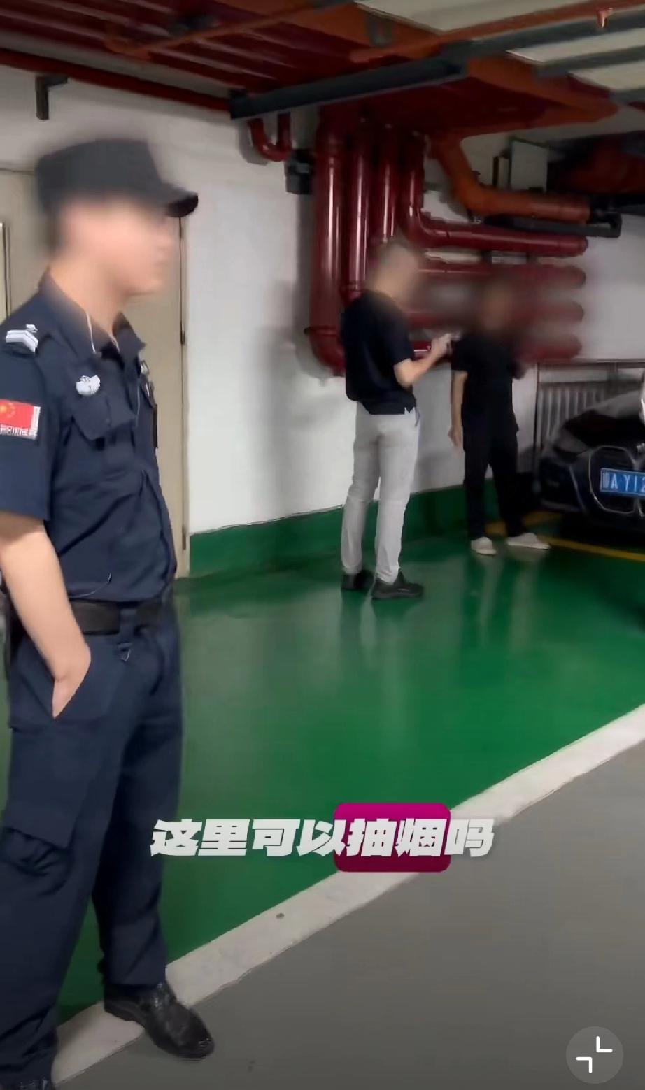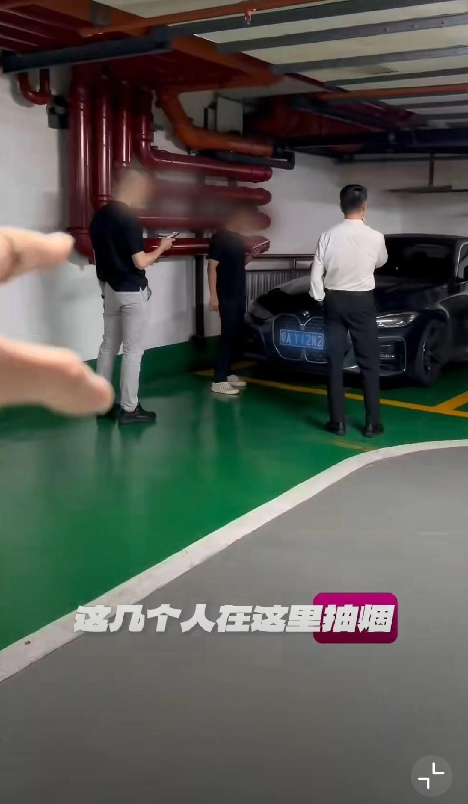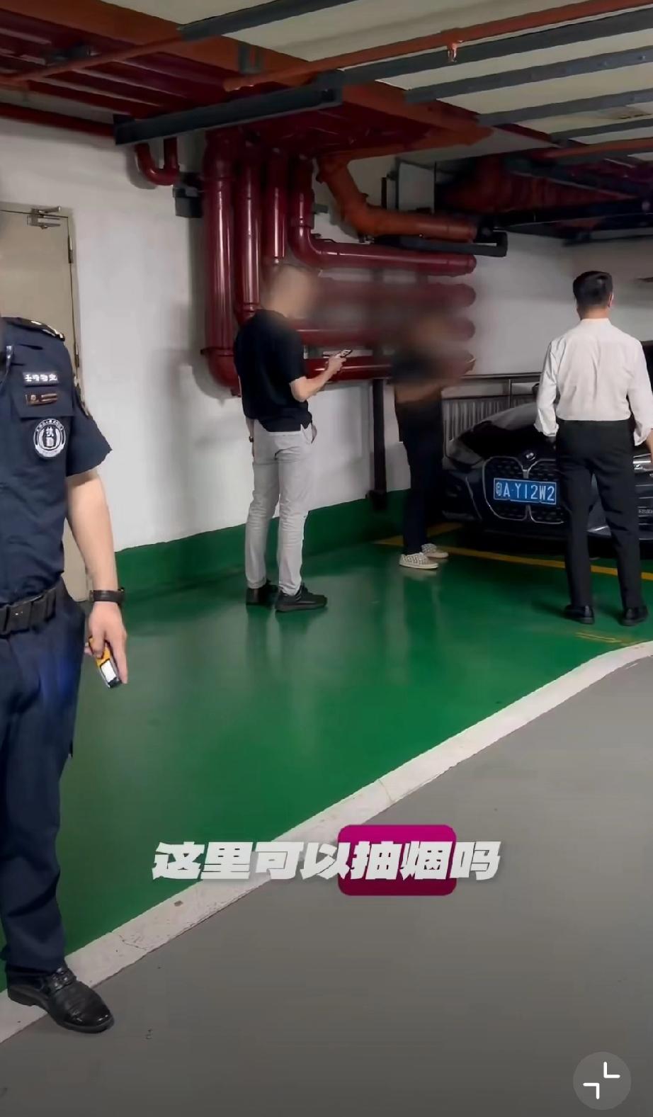 几名男子特意避开办公区域,跑到地下停车场角落里抽烟!结果还是被禁烟的美女给抓个正