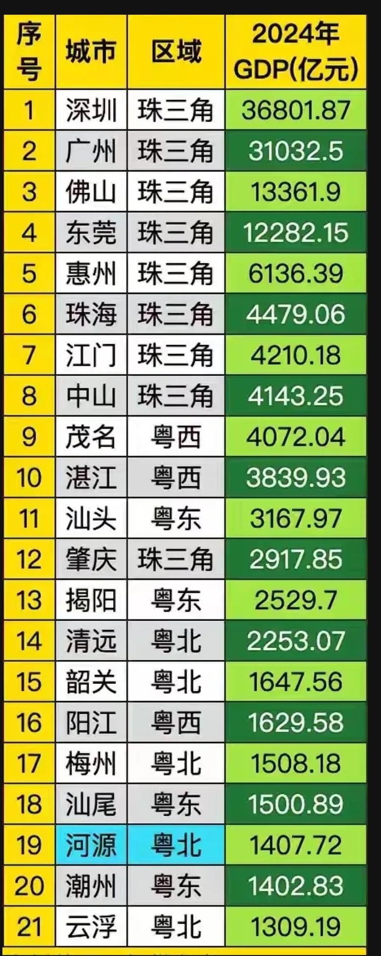 粤北地区的韶关清远梅州河源云浮的经济也不差,当时的韶关是老工业基地,煤矿钢铁是韶关市当代经济支柱产业,而云浮有矿业,梅州的矿业也非常丰富,所以粤北经济也不差,