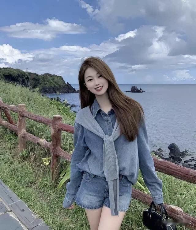 海边少女,牛仔风穿搭,阳光灿烂,心情大好!🌞