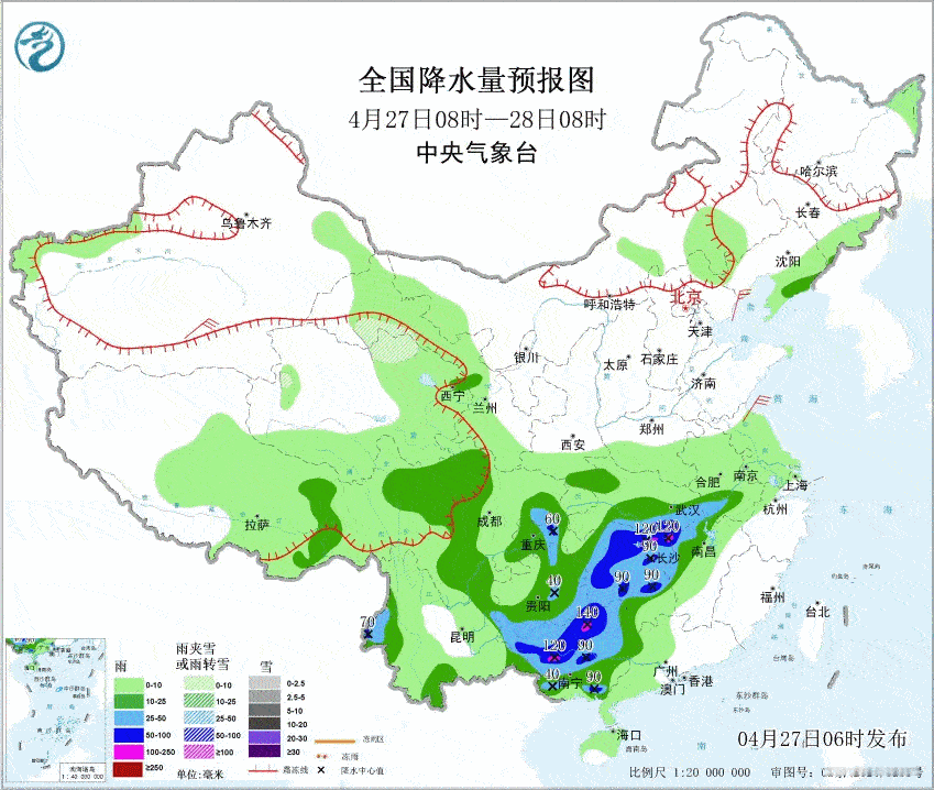 1、降水4月27-29日,西南地区东部、江汉、江南、华南等地先后有大到暴雨,湖南、江西、广西、广东等局地有大暴雨,并伴有短时强降水、雷暴大风或冰雹等强对流天气。图1为官方报、图2-3为欧美数值预报,图4-5为形势场叠加部分气象要素预报。