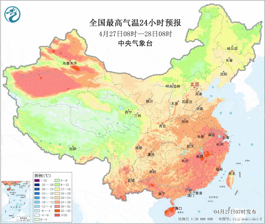 28-29日因为阴雨,可能会看到南北气流倒挂。江淮江南的气温会低于东北华北。29日最高,杭州14℃、合肥15℃、南京16℃、上海16℃、南昌17℃。哈尔滨22℃、长春22℃、沈阳24℃、北京25℃、天津25℃。到了30日,江南雨停升温,但东北华北气温也上升,南北倒挂持续。