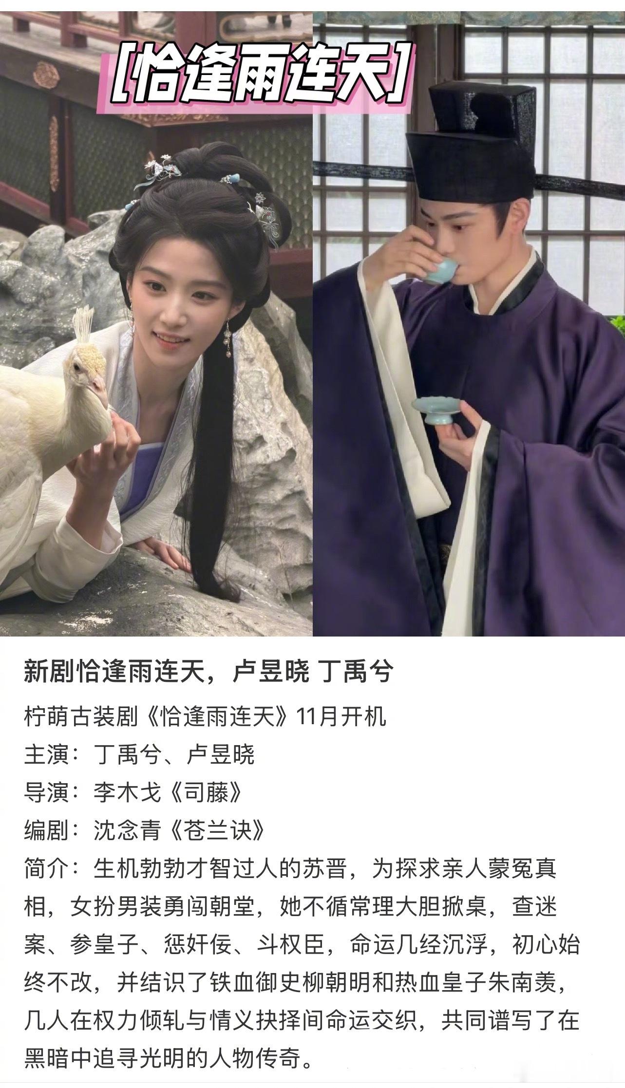 卢昱晓确认出演《恰逢雨连天》 ,男主丁禹兮卢昱晓方确认演恰逢雨连天