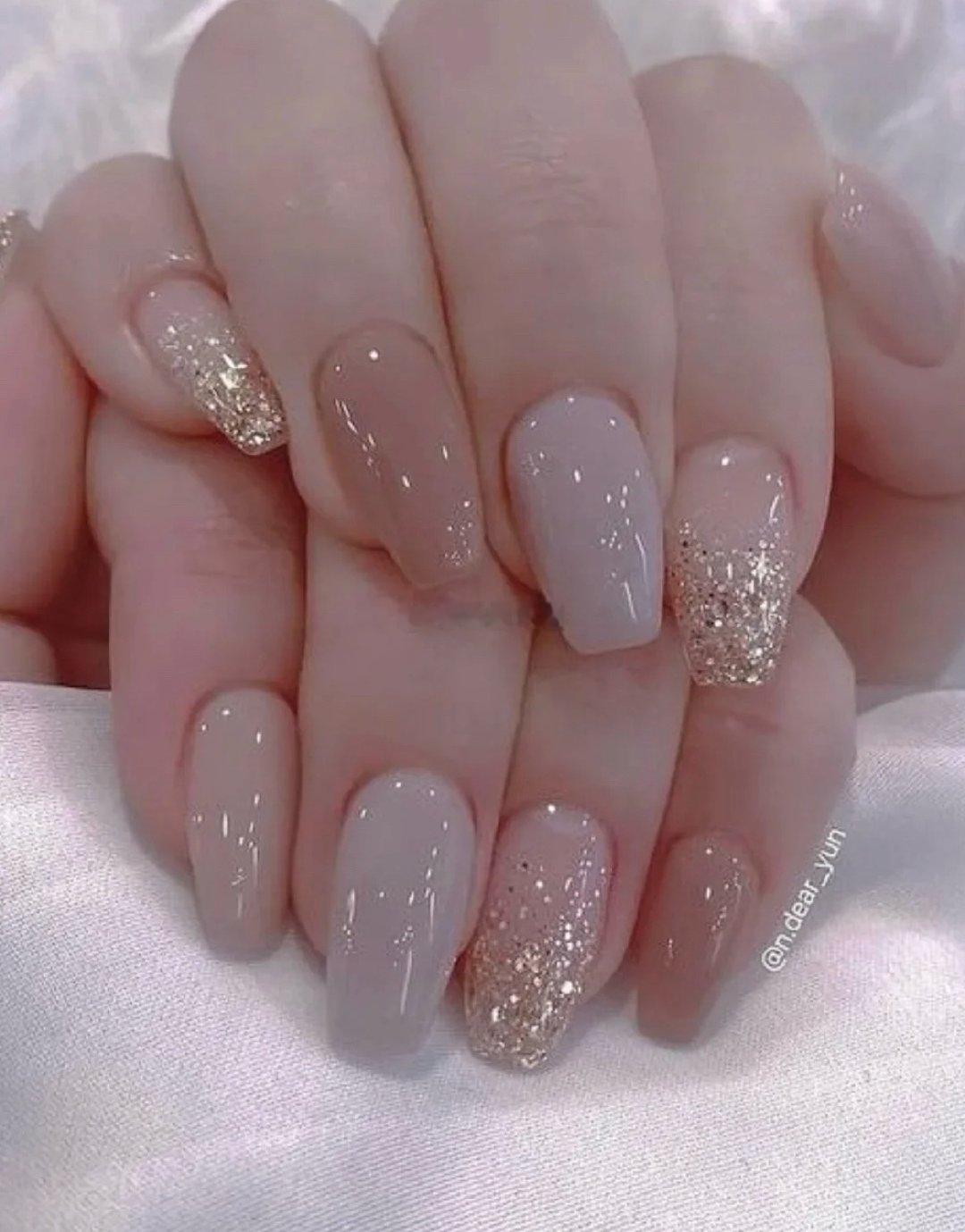 醋酸美甲|不是真的加醋酸~而是那种半雾半透、柔光磨皮的质感,像醋酸纤维板材一样自带通透肌理!朦胧柔光+层次感设计,低饱和度裸粉、奶咖、灰蓝是主色调,再配上克罗心金属贴、斜角构图或碎钻胶,少女心与个性平衡得刚刚好~