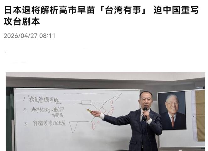 4月27日,根据岛内媒体报道,日本退将小川清史声称,高市早苗市的发言极具冲击性,等于表明日本可能在平时阶段就介入,这已打破了中国原有作战前提,迫使中国必须重写收台的剧本。这是非常大的战略讯号。