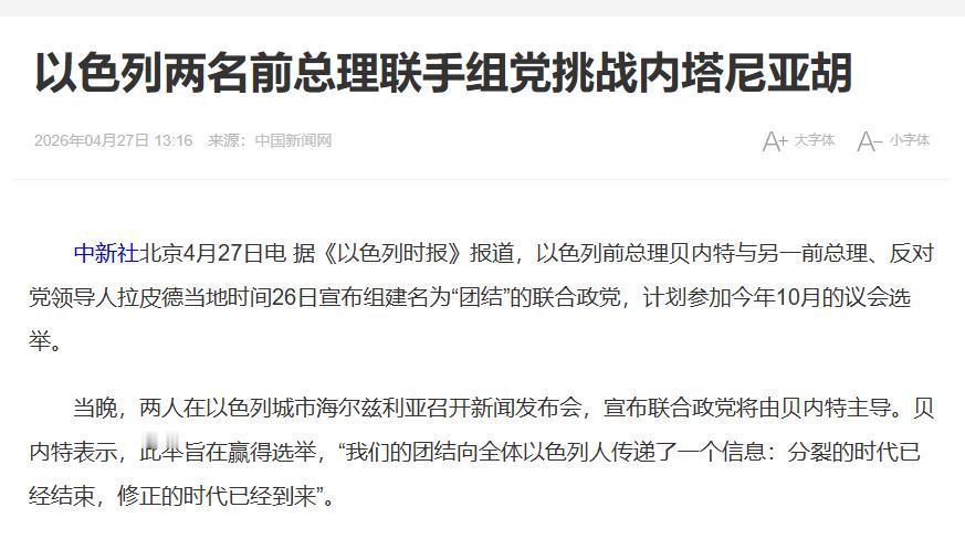 所以,内塔尼亚胡这次面临的,是一个“三面夹击”的局面。第一面是民意下滑,老百姓对他越来越不耐烦;第二面是司法追责,贪腐案像一把悬在头顶的剑;第三面是政治对手的强力整合,贝内特和拉皮德这对“老搭档”重新联手,还试图拉拢更多力量。这三股力量在2026年4月底这个时间点汇聚在一起,形成了对内塔尼亚胡执政联盟最严峻的一次挑战。