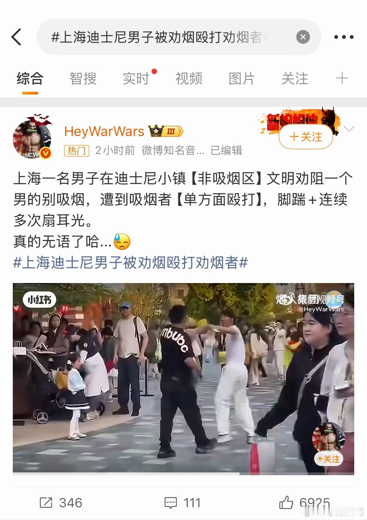 上海迪士尼男子被劝烟殴打劝烟者这话题读第一遍没读懂什么意思,又是因为吸烟引起的纠