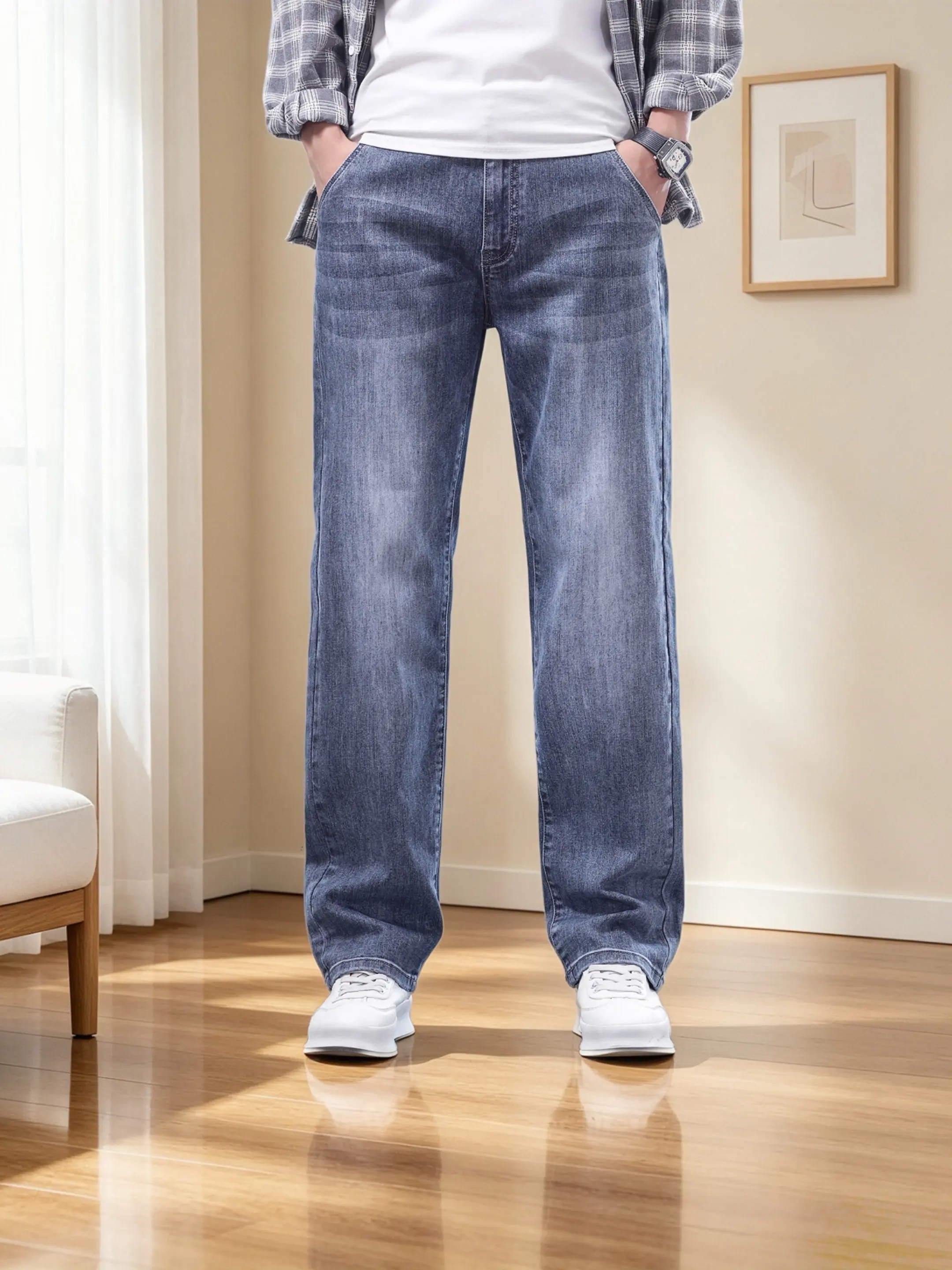 男生的裤子应该怎么选 牛仔裤穿搭 潮流直筒牛仔裤 腿粗腿短男生穿什么裤...