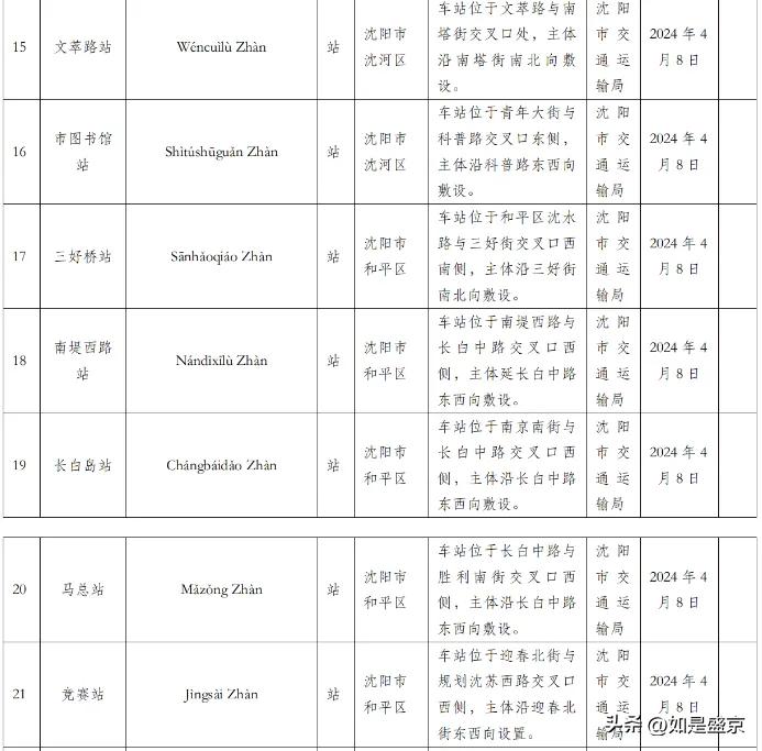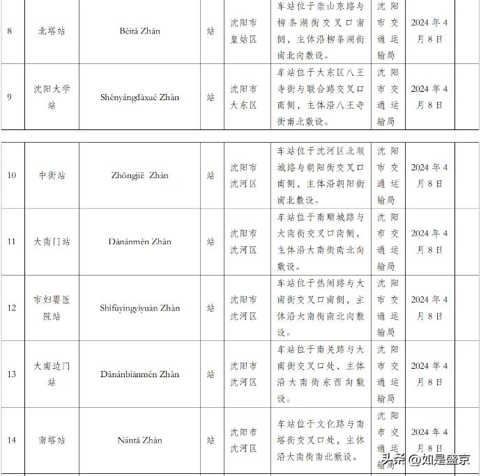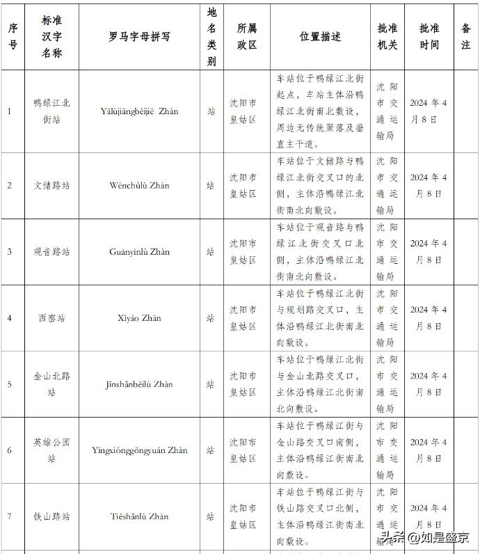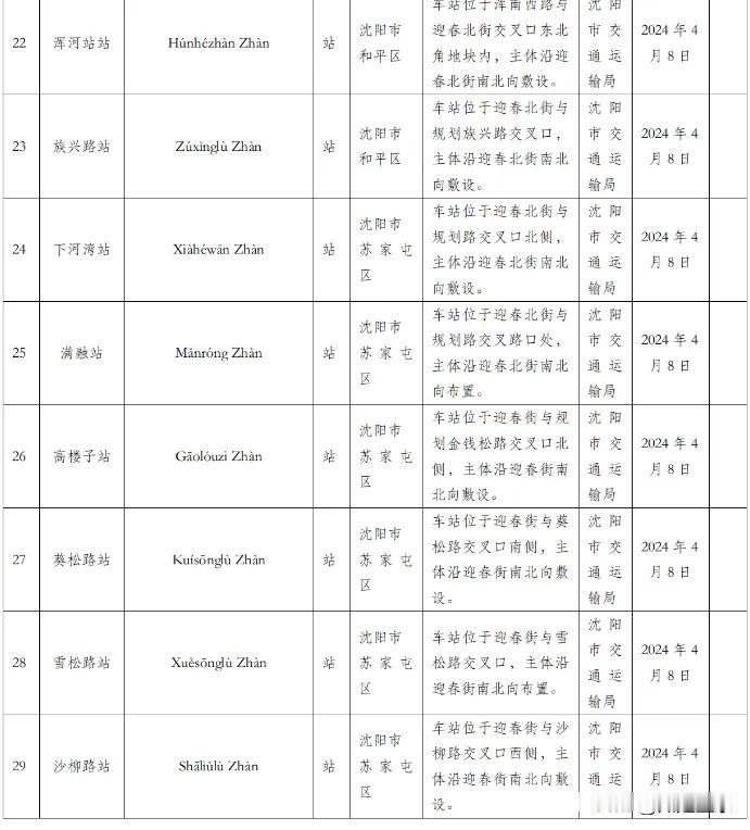 好消息!近日,沈阳地铁6号线一期工程车站命名对外公告,一共29座车站,标准名称已正式获批。