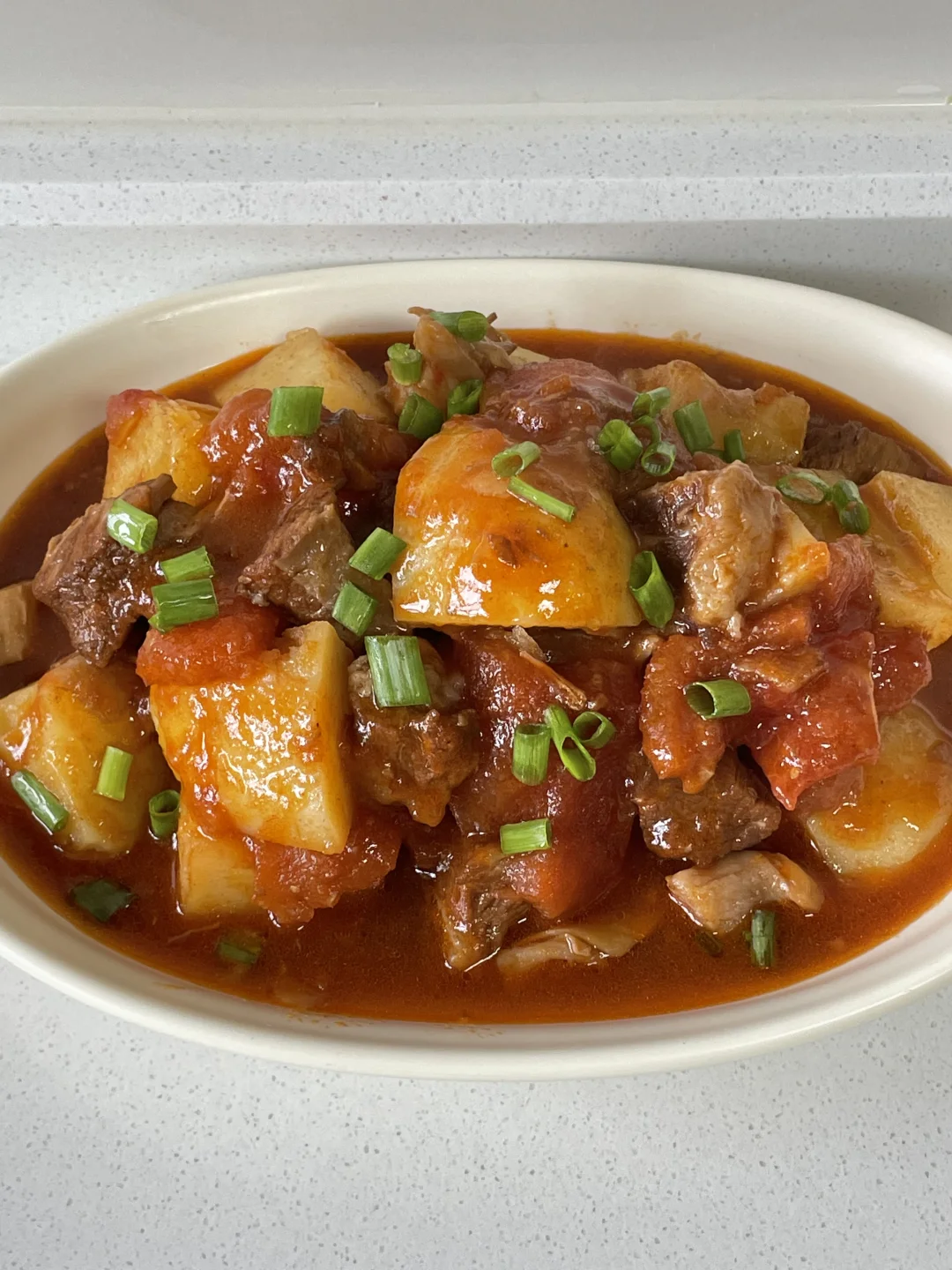 西红柿炖牛腩,不管是家里有小朋友还是有老人的,都很适合做这道菜,营养又简单,裹满西红柿的汤汁,牛腩软糯入味,土豆更是米饭搭子,家常做法分享给大家