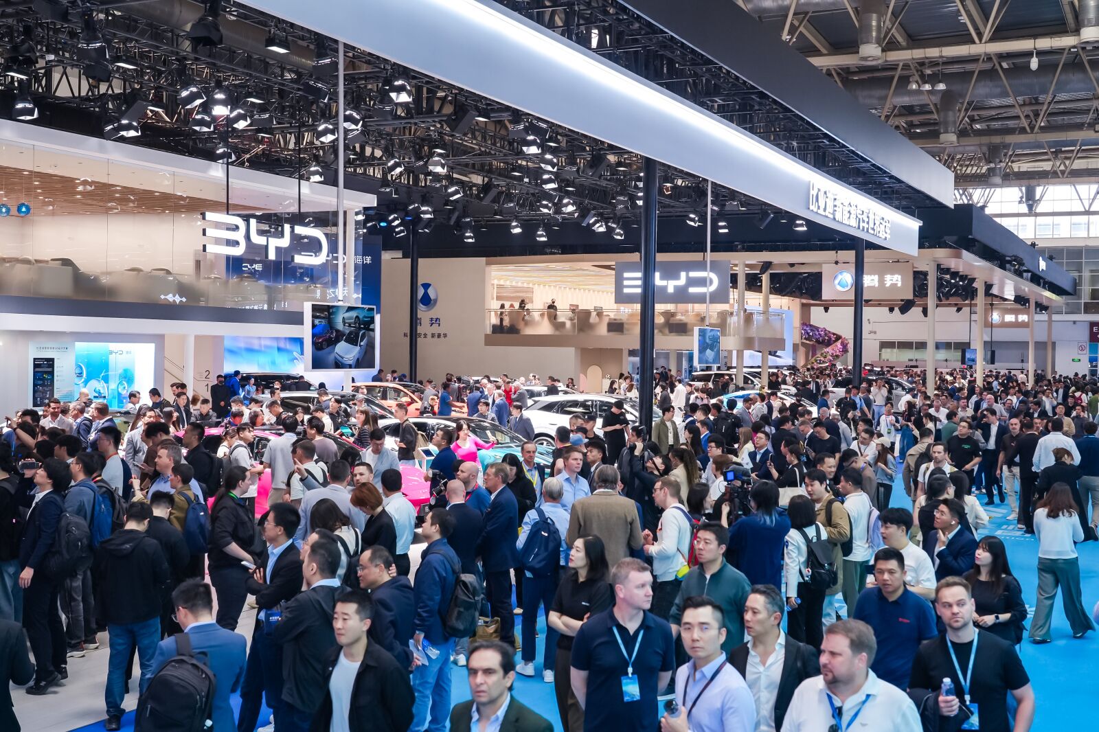 在北京车展,很多厂商只能承包一个站台,有些时候人流还不多。但是真正的顶流厂商比亚