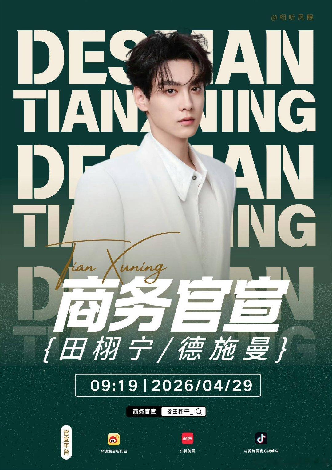 田栩宁新商务德施曼预热,后天官宣!田栩宁商业价值很高吧