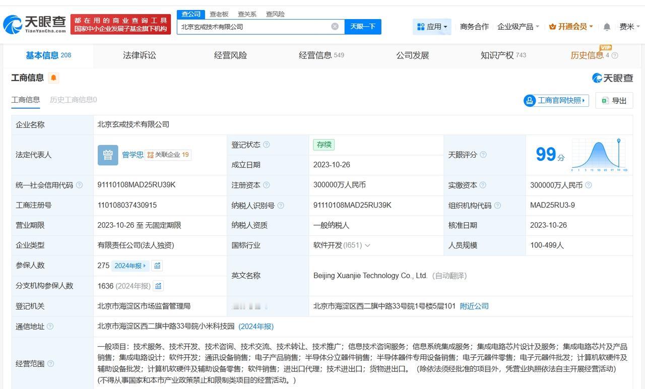 小米已注册多枚玄戒关联商标 小米已登记玄戒O1芯片作品著作权小米玄戒O1芯片已出货超100万颗