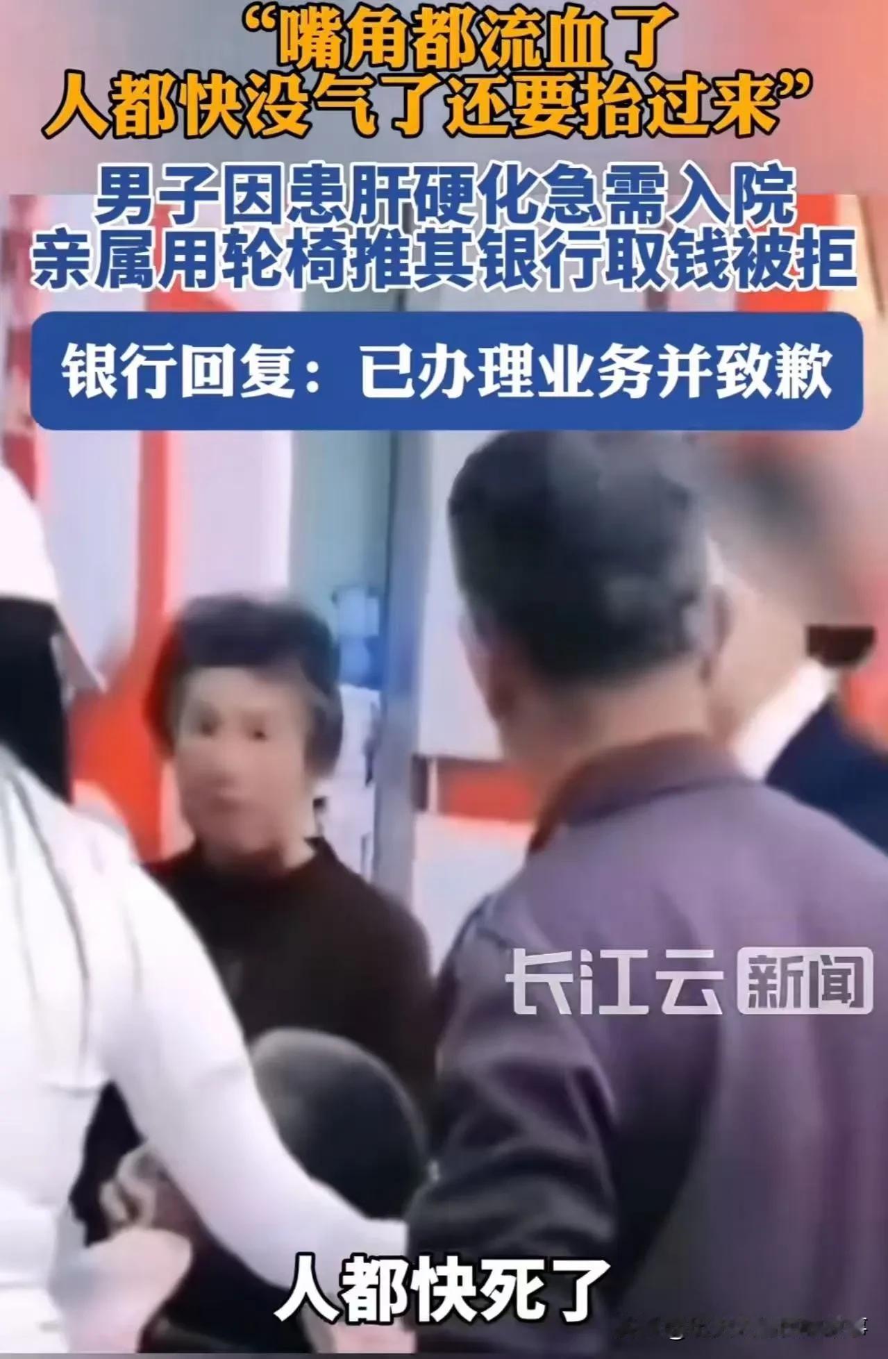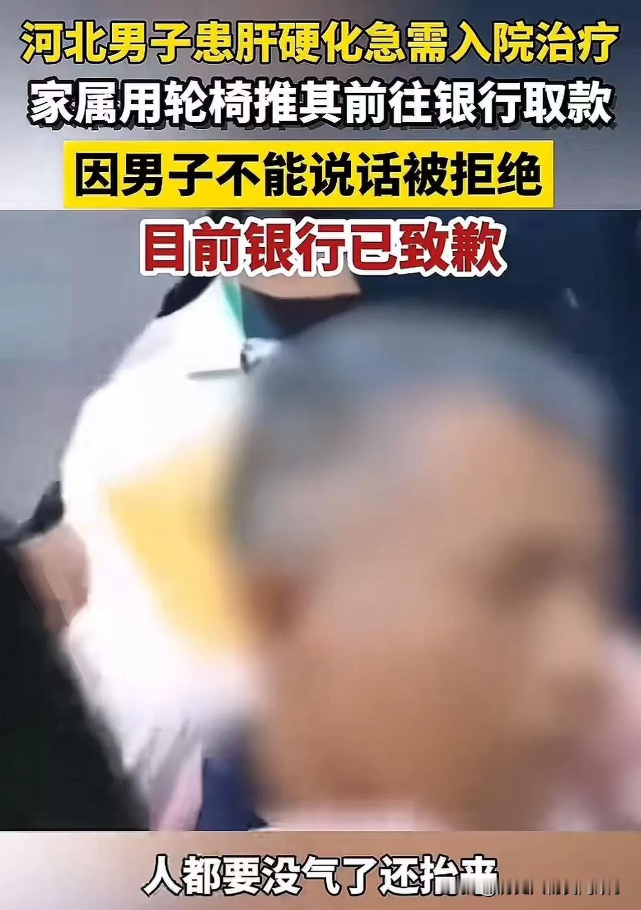这是2026年4月24日发生在河北邢台银行汇通支行的真实事件,涉事男子石先生(未婚、无子女)因肝硬化晚期昏迷,嘴角渗血、病危,急需医疗费。