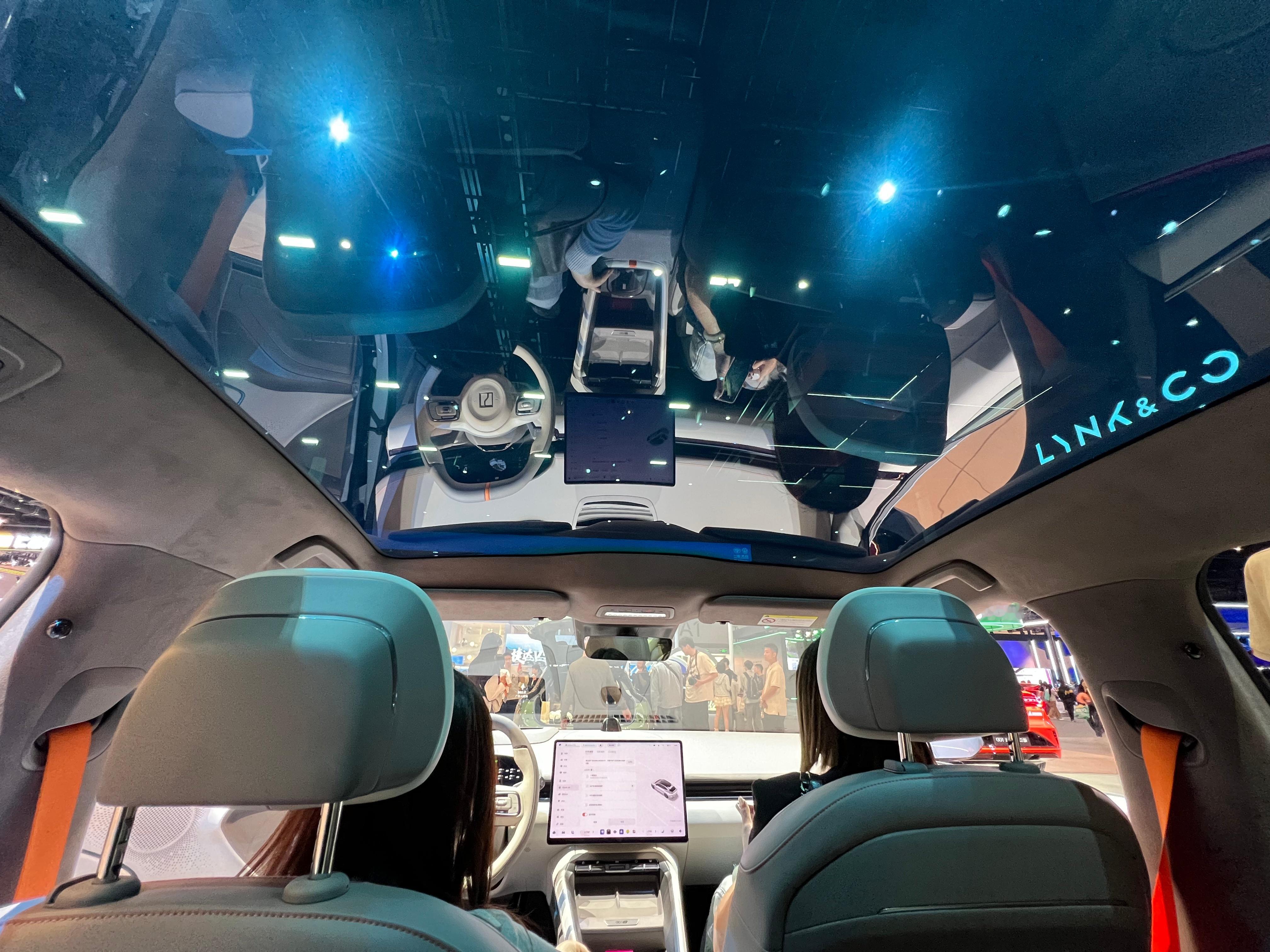 玻璃也有升级四门双层夹胶玻璃天幕采用双层纳米镀银隔热隔绝99.99%紫外线还有新一代EC感光变色天幕调节明暗