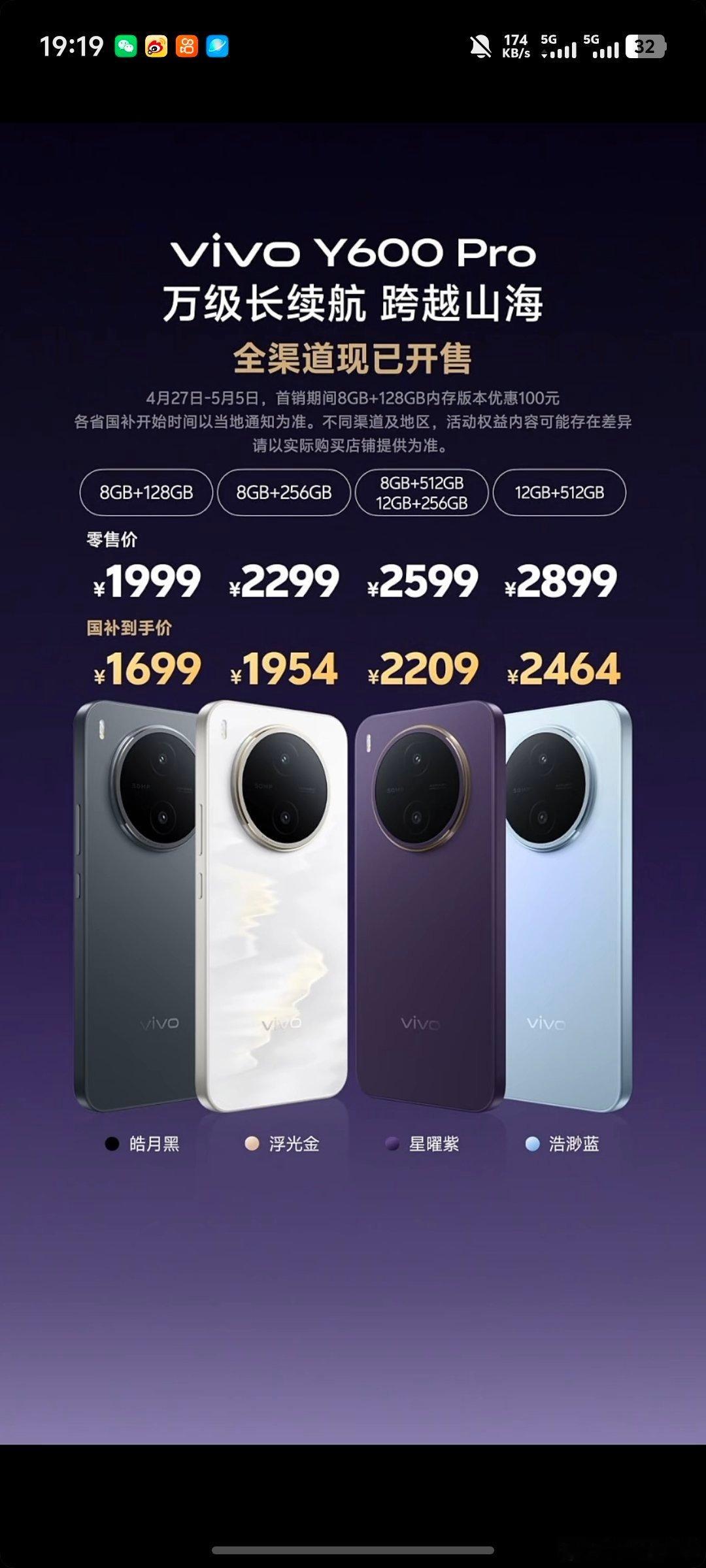 vivo Y600 Pro价格出来了国补后1699元起最近还有购机权益包大家感觉如何?