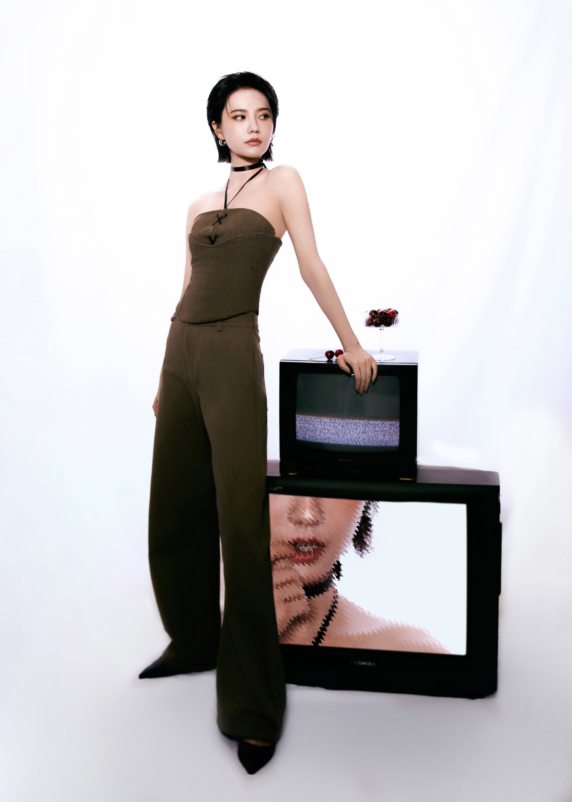 所有人感受姜珮瑶这组出图、、短发抹胸尖头高跟完全上位者姿态