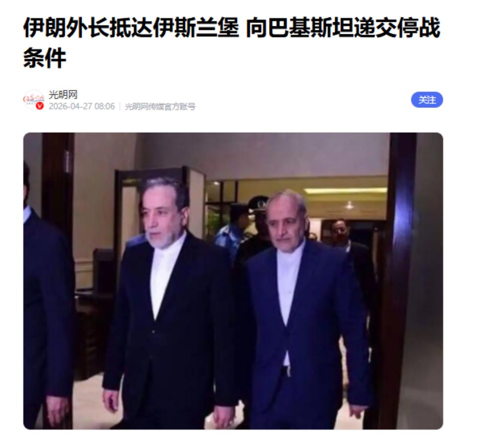 2026年4月26日,伊朗外长阿拉格齐跑到巴基斯坦,直接甩出“立即停火、换俘虏、重启边境贸易”的停战条件。这事儿可不是简单“劝架”,而是伊朗在美伊对抗升级背景下玩的一手“经济绑安全”新棋——用钱袋子稳住枪杆子,比光靠军队硬刚更管长远。