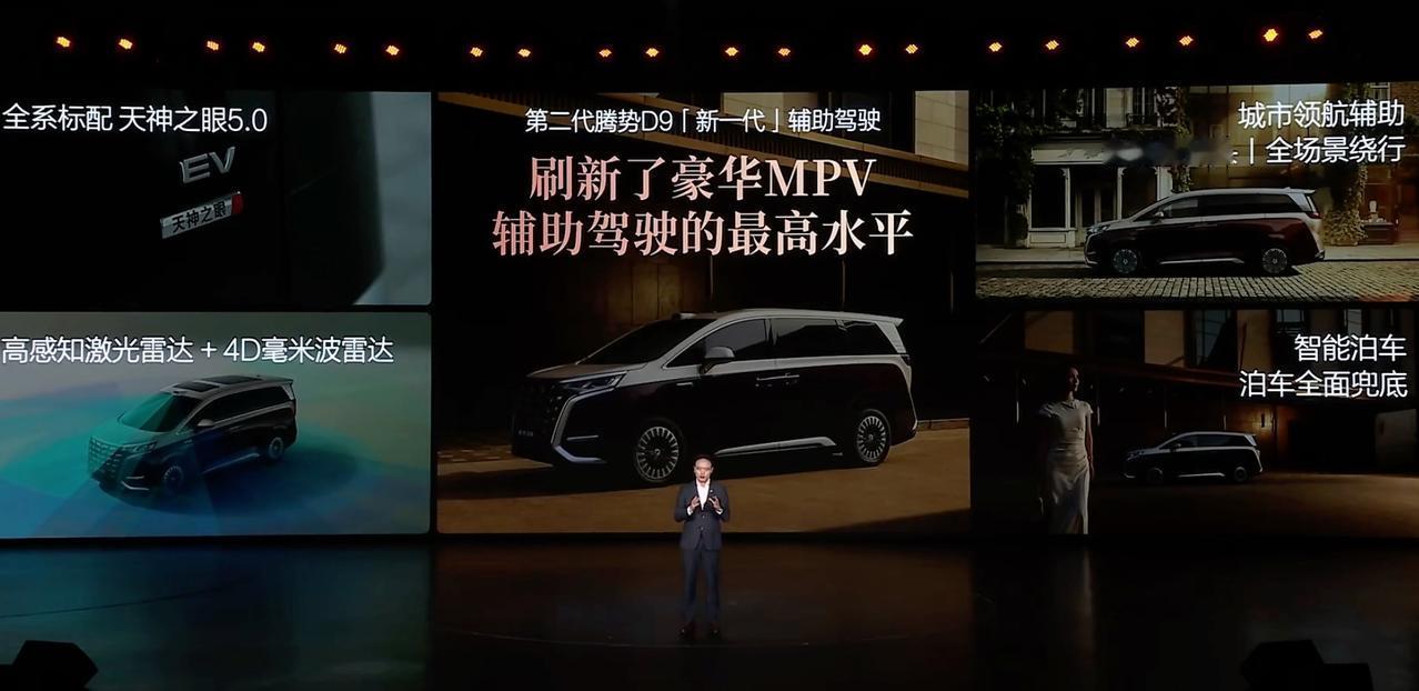 全系标配天神之眼5.0,激光雷达+4D毫米波雷达,九大高难度掉头场景一把过;全车11块屏,AR投影感应侧滑门+尾门,蓝牙无感钥匙