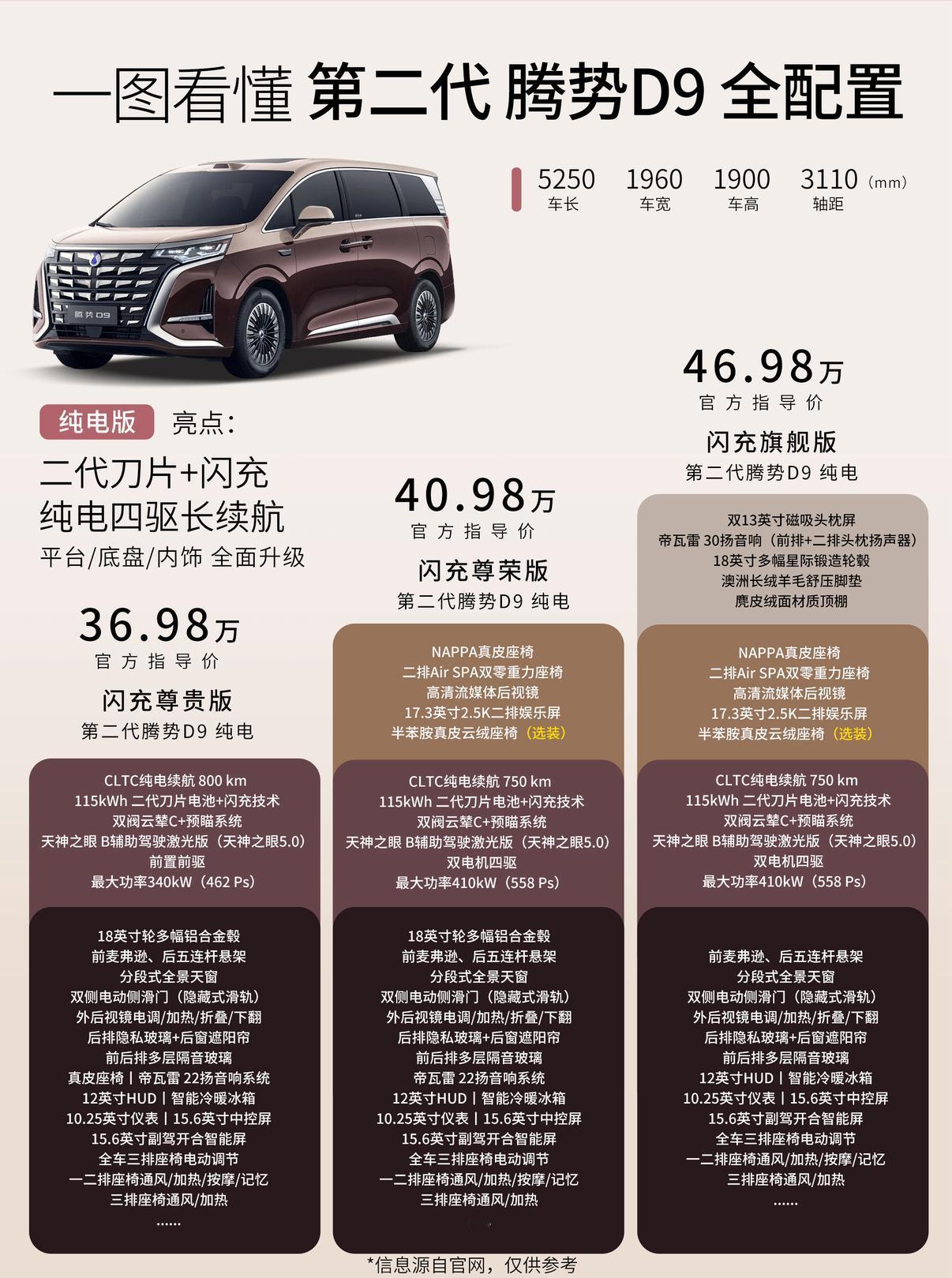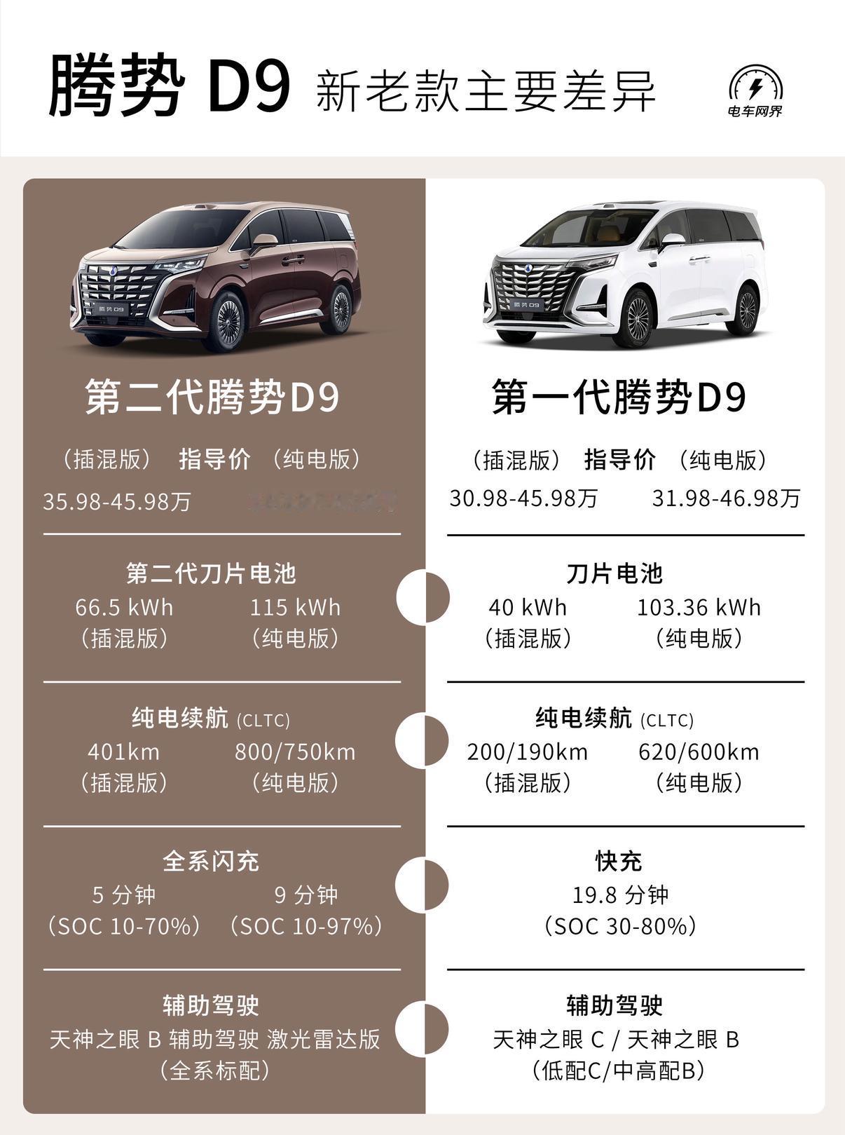 第二代腾势D9正式上市了,插混DM-i版起售价为35.98-45.98万元,纯电