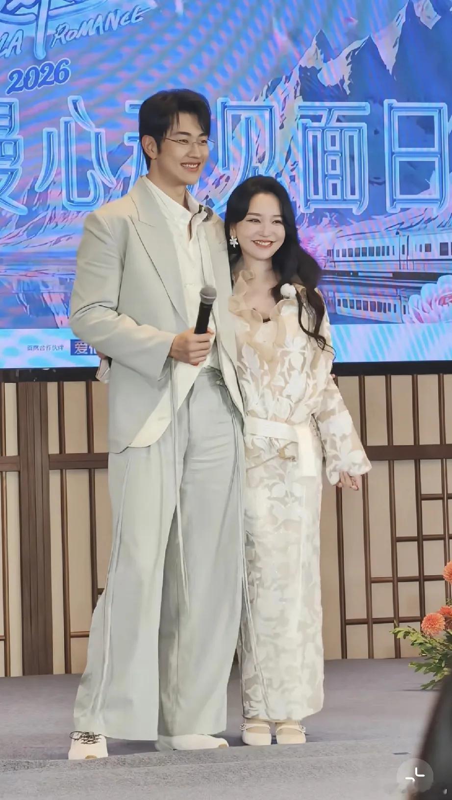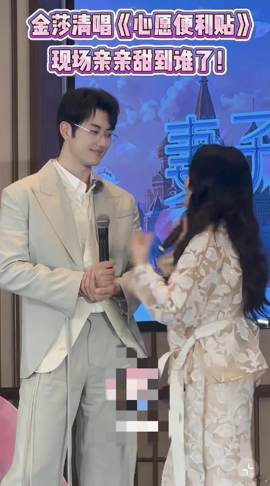 金莎和孙丞潇录制《妻子的浪漫旅行》迎来见面同框,两人同框身高差格外显眼。孙丞潇身高189cm,年轻挺拔、清爽帅气,年仅26岁少年感十足。反观45岁的金莎,即便踩着近八厘米的高跟鞋,依旧比对方矮上一大截。岁月痕迹也十分明显,脸部圆润,眼袋突出,整体状态尽显熟龄感,两人外形上的年龄差距一目了然。久别重逢的二人氛围感拉满,现场甜蜜对唱,还当众相拥亲吻,互动十分亲昵。抛开外形与年龄的巨大反差,金莎全程笑意满满,状态松弛又幸福,能看出来这段姐弟恋当下相处得十分甜蜜。
