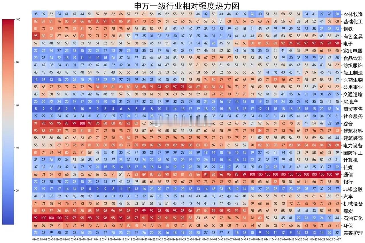 通信(99)、电子(98),是当前最强的两个行业,代表的正是算力和芯片。电力设备(88)紧随其后。这三个行业构成了算电协同的基本盘。