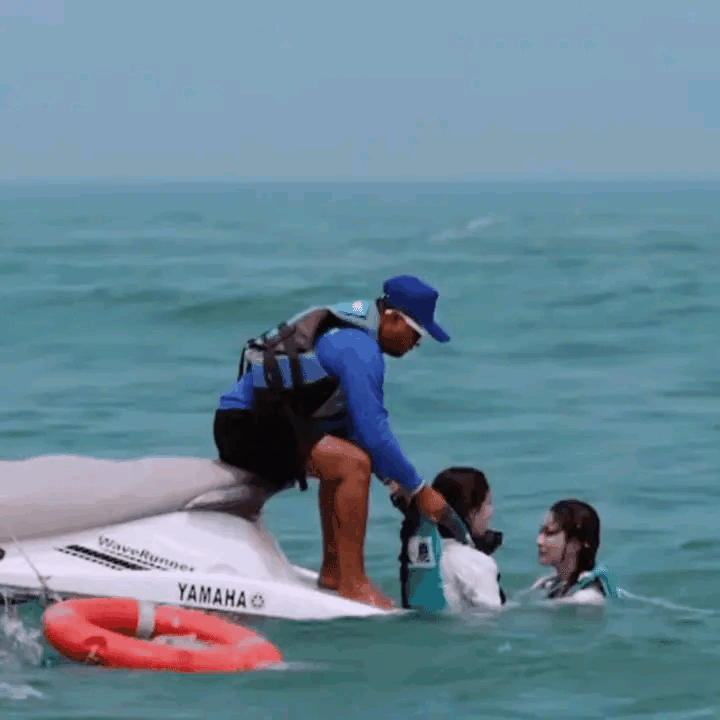 白鹿孟子义就这么被救生员大哥提溜起来哈哈哈哈。抱上来又要被说占便宜了,这是最稳妥的办法。救生员想拉着一个物品,把这两个女孩子拉上来了,真的好好笑。这么轻轻一提就上来了。女明星都太轻了,这场景挺有意思的。