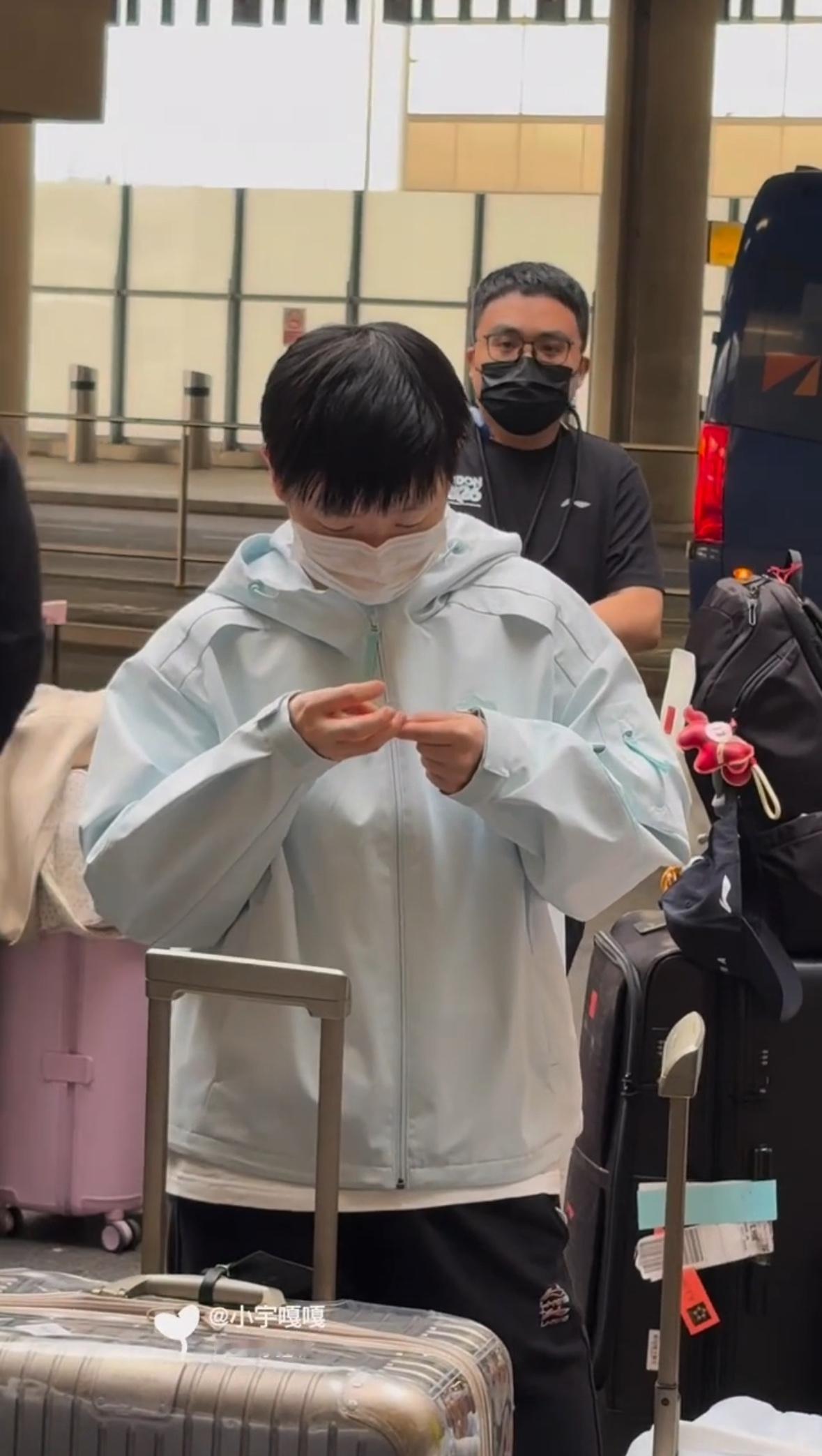 站着不知道干啥,也扣手指头,太可爱了,我们终于和世界冠军一样了,紧张的时候不好意思也会扣手指头,还是太让人喜欢了呀🌟!